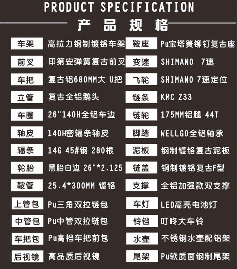 ![]() | Corolla electroplated silver top with [with back seat bag]] | 26 inch men's style | ¥2599.0 / ≈ 31 613 ₽ | 666 | 5281888452377 |