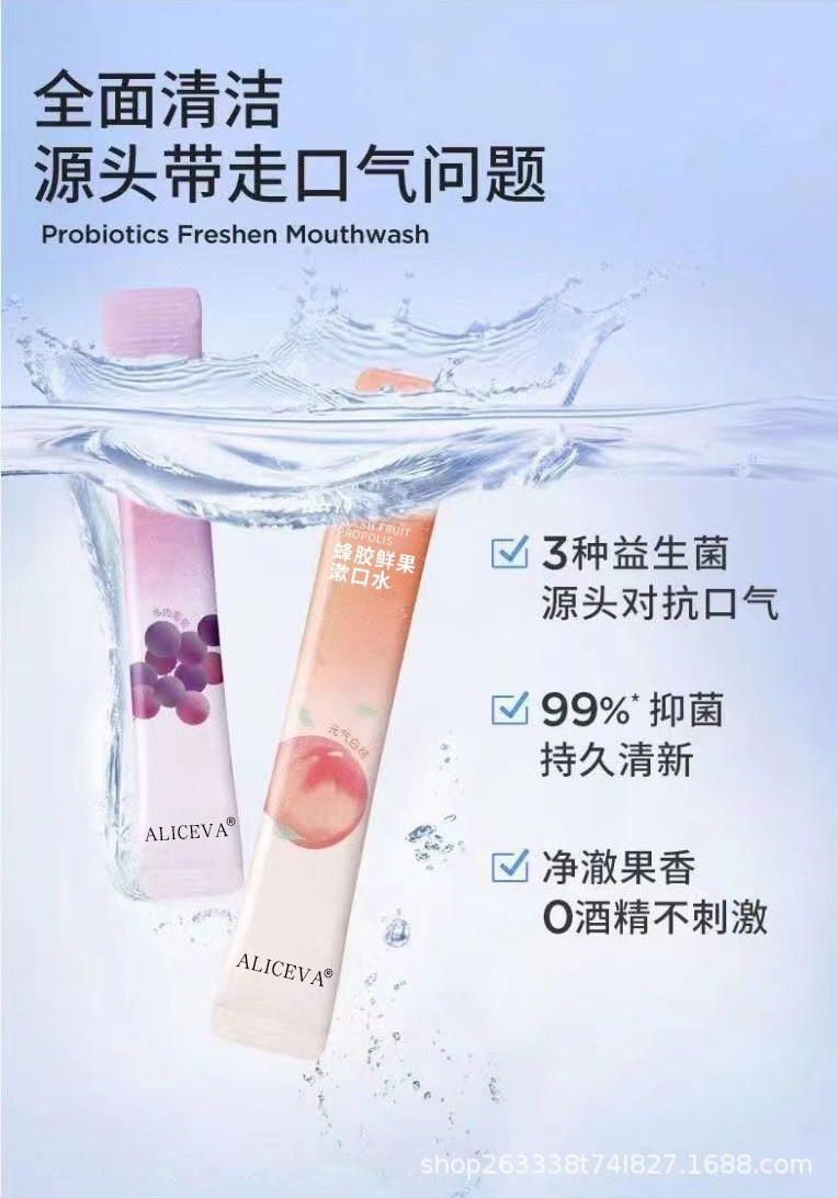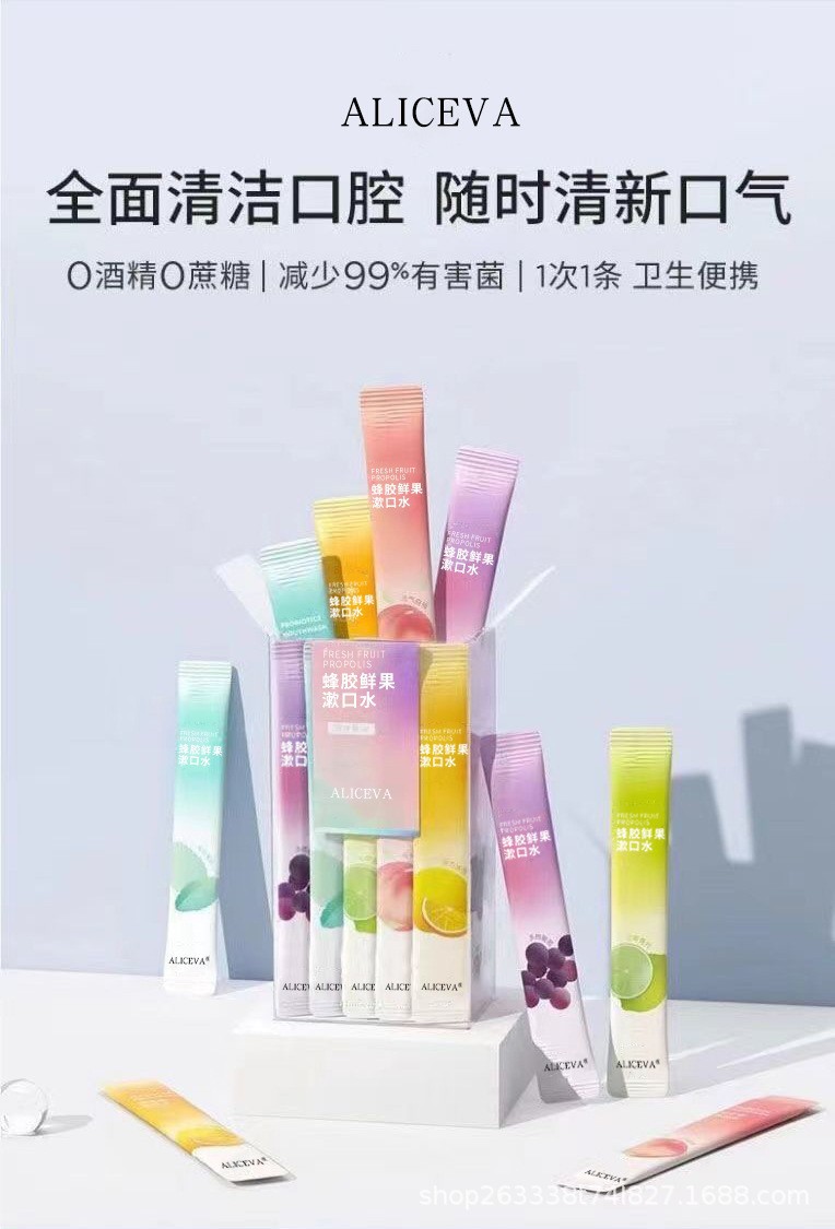 Полоскание рта ALICEVA с фруктовым вкусом, оптовая продажа, одноразовое, свежесть дыхания, прополис, портативная упаковка
