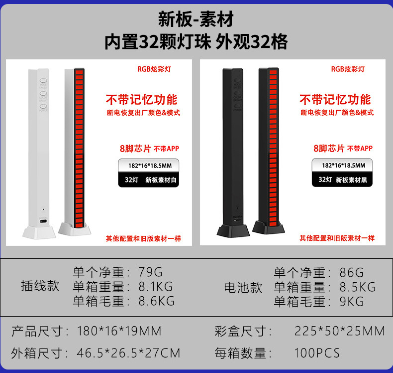 ![]() | 5V (plug-in line) | 32 lamp material [black + APP]] | ¥10.5 / ≈ 128 ₽ | 6275 | 5041680028366 | |