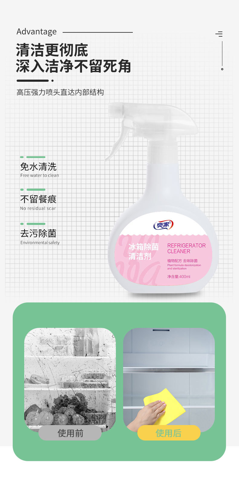 Очиститель для холодильников Yijia, удаление загрязнений и запахов, подходит для очистки внутри и снаружи холодильника, быстро сохнет, без воды, не вызывает раздражения