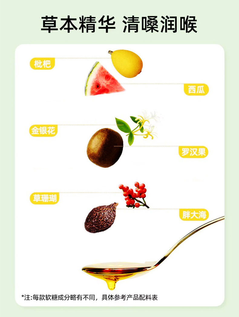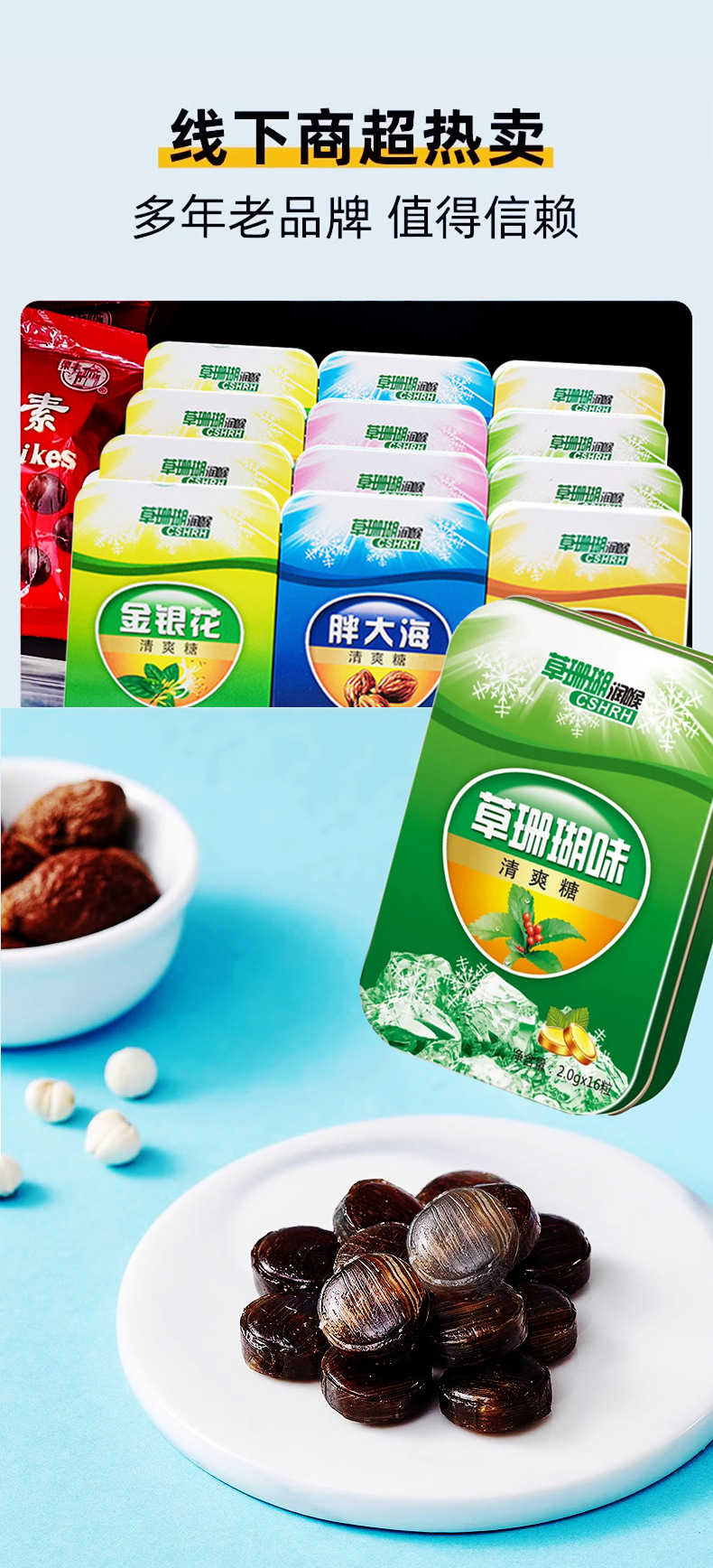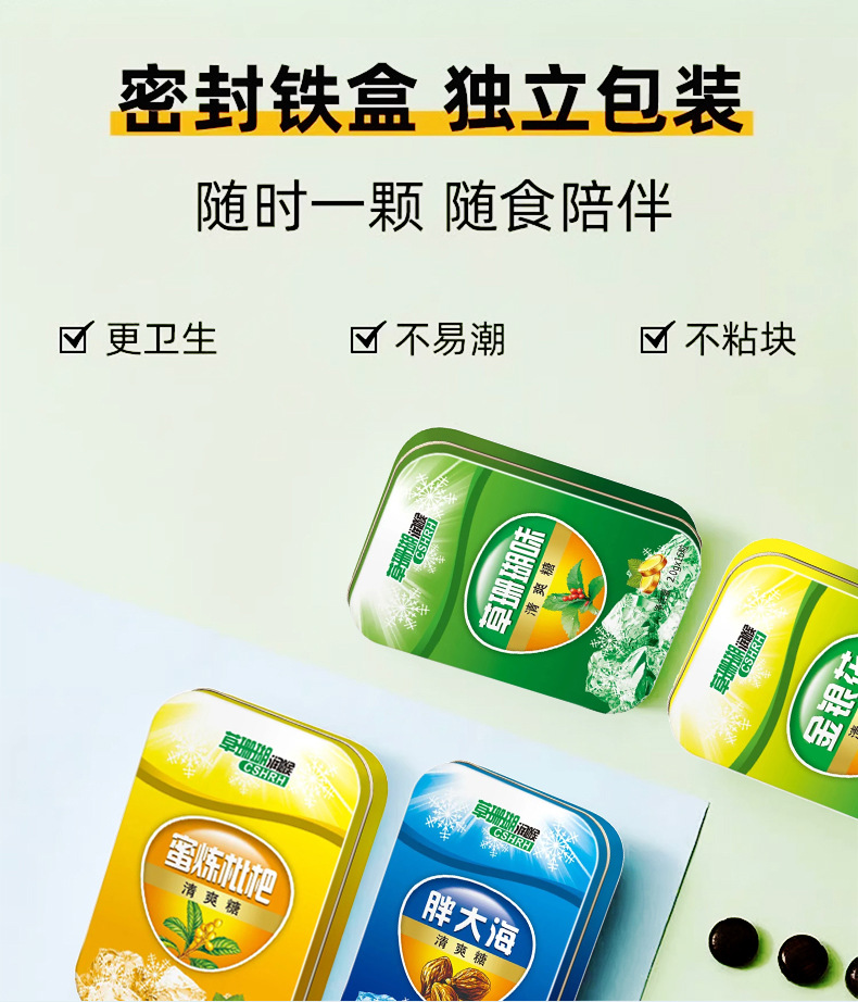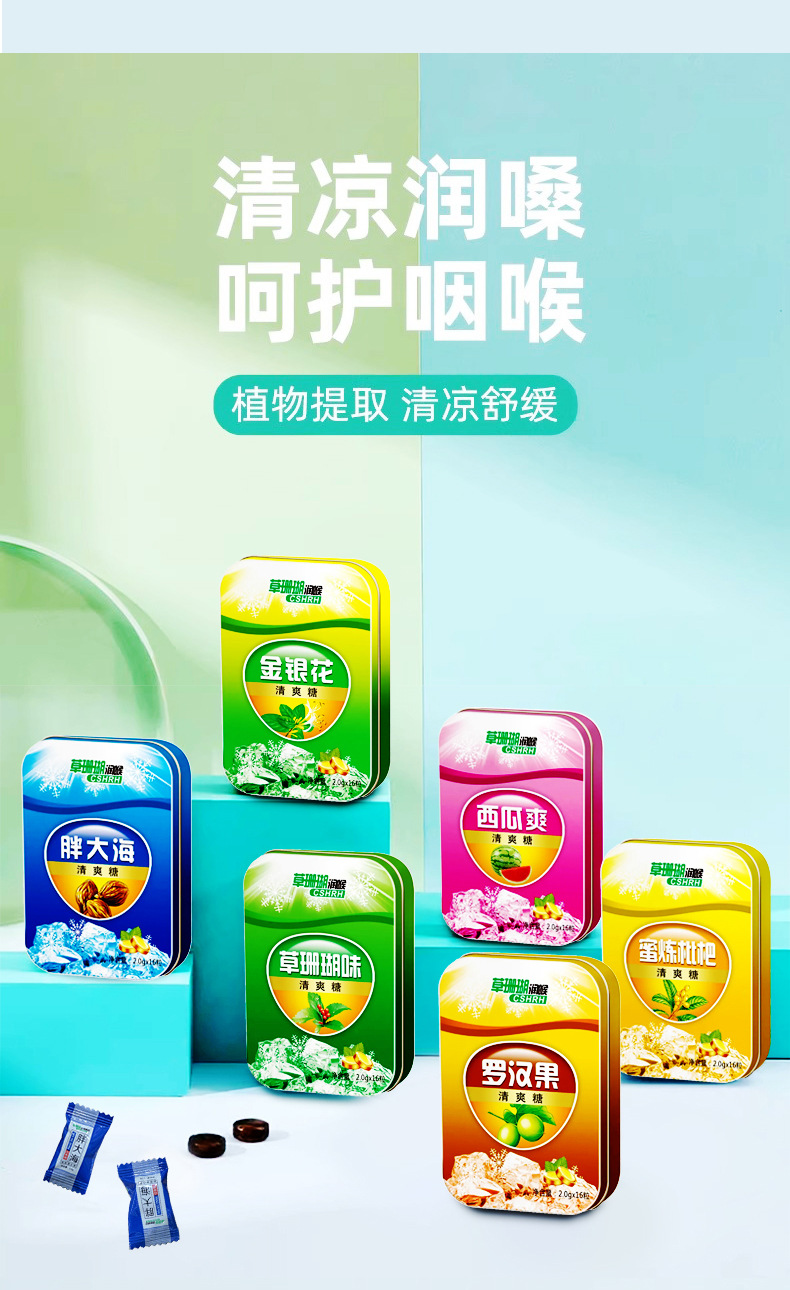 Сырьё и ингредиенты White sugar, maltose syrup, pangdahai, honeysuckle, green fruit, food flavors, spices (including mint flavor)