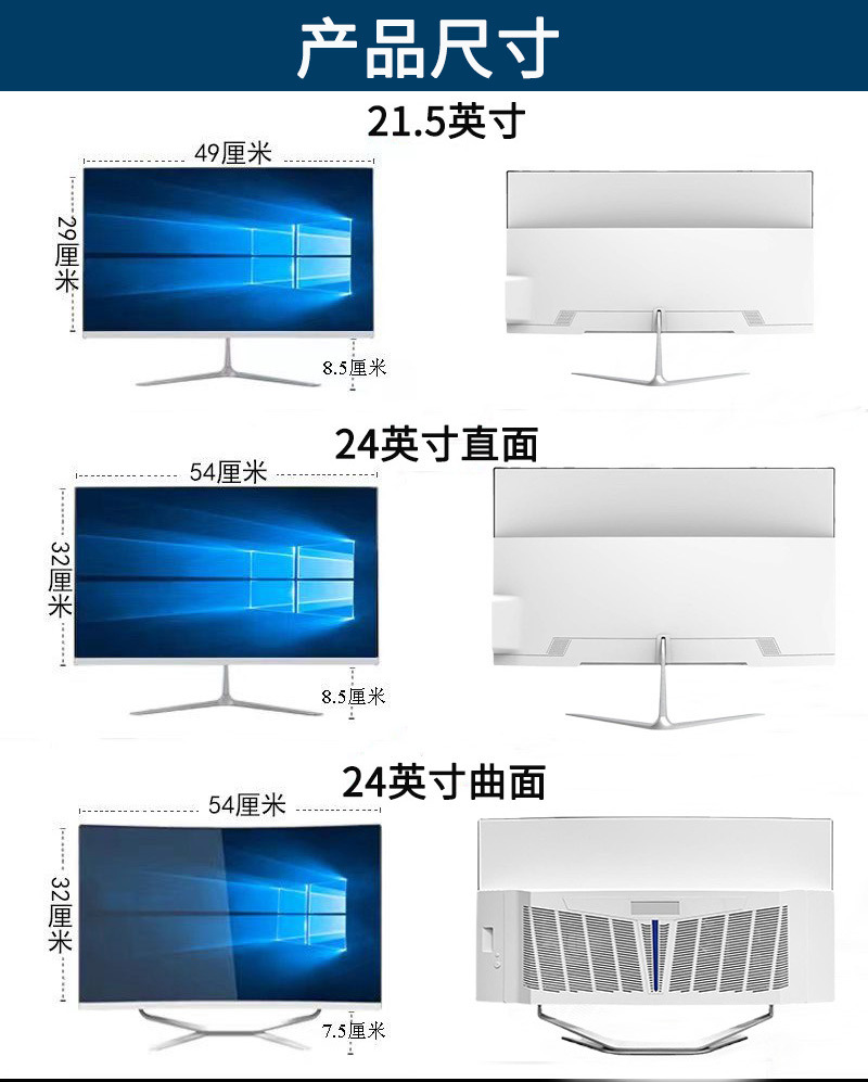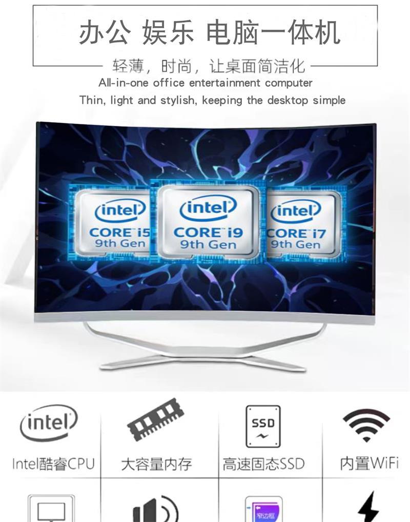 Бизнес офисный компьютер все-в-одном, изогнутая поверхность, безрамочный, 22 дюйма, 24 дюйма, HD, настольный компьютер, полный комплект