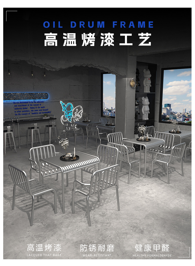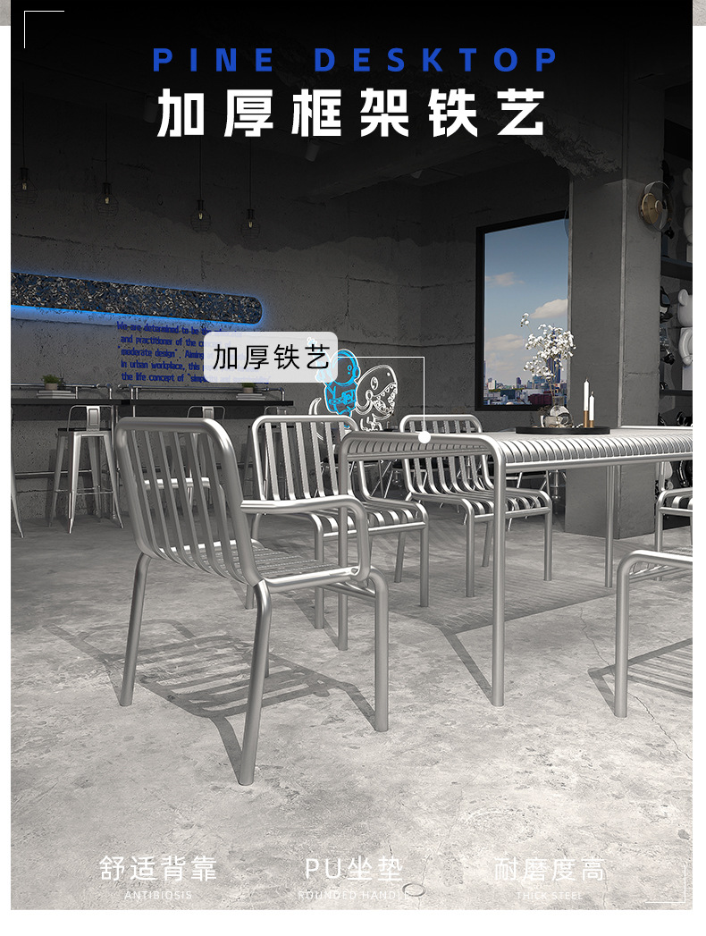 Стол и стулья в индустриальном стиле для уличного кафе, зоны отдыха, балкона, железный комплект столов и стульев