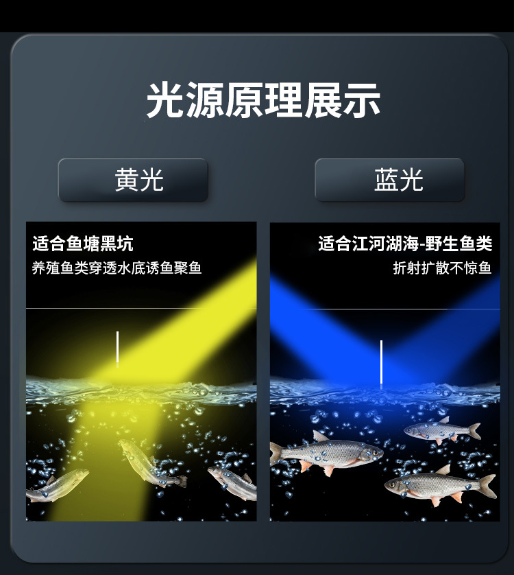 Новая рыболовная лампа 2023, с переменным желтым и синим светом, мощная