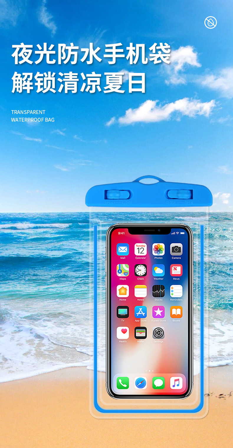 Светящийся водонепроницаемый чехол для мобильного телефона с сенсорным экраном для плавания и дайвинга, прозрачный запечатанный мешок с шнурком, водонепроницаемый чехол для мобильного телефона, оптовая продажа