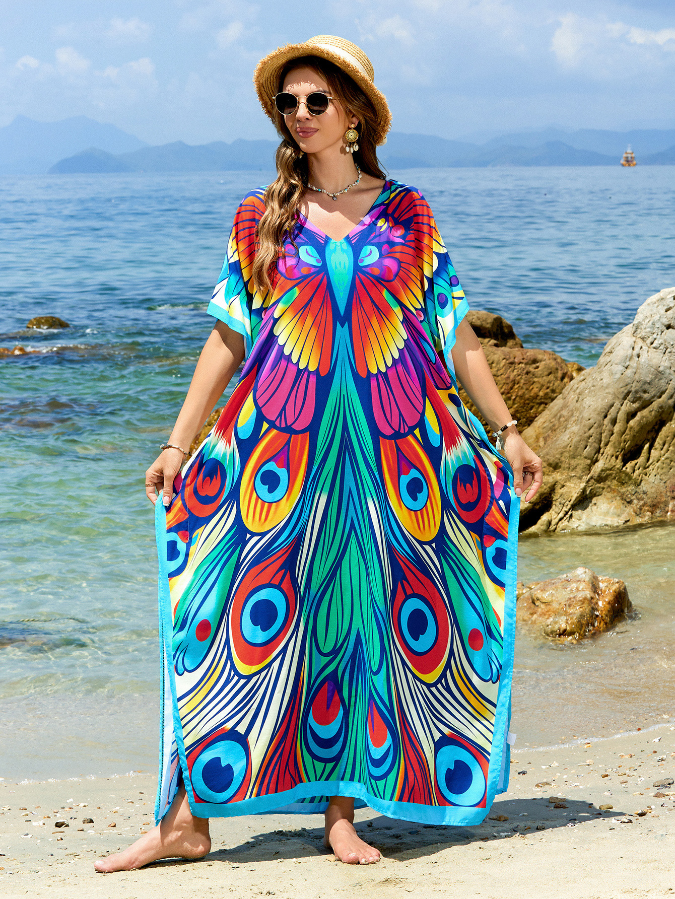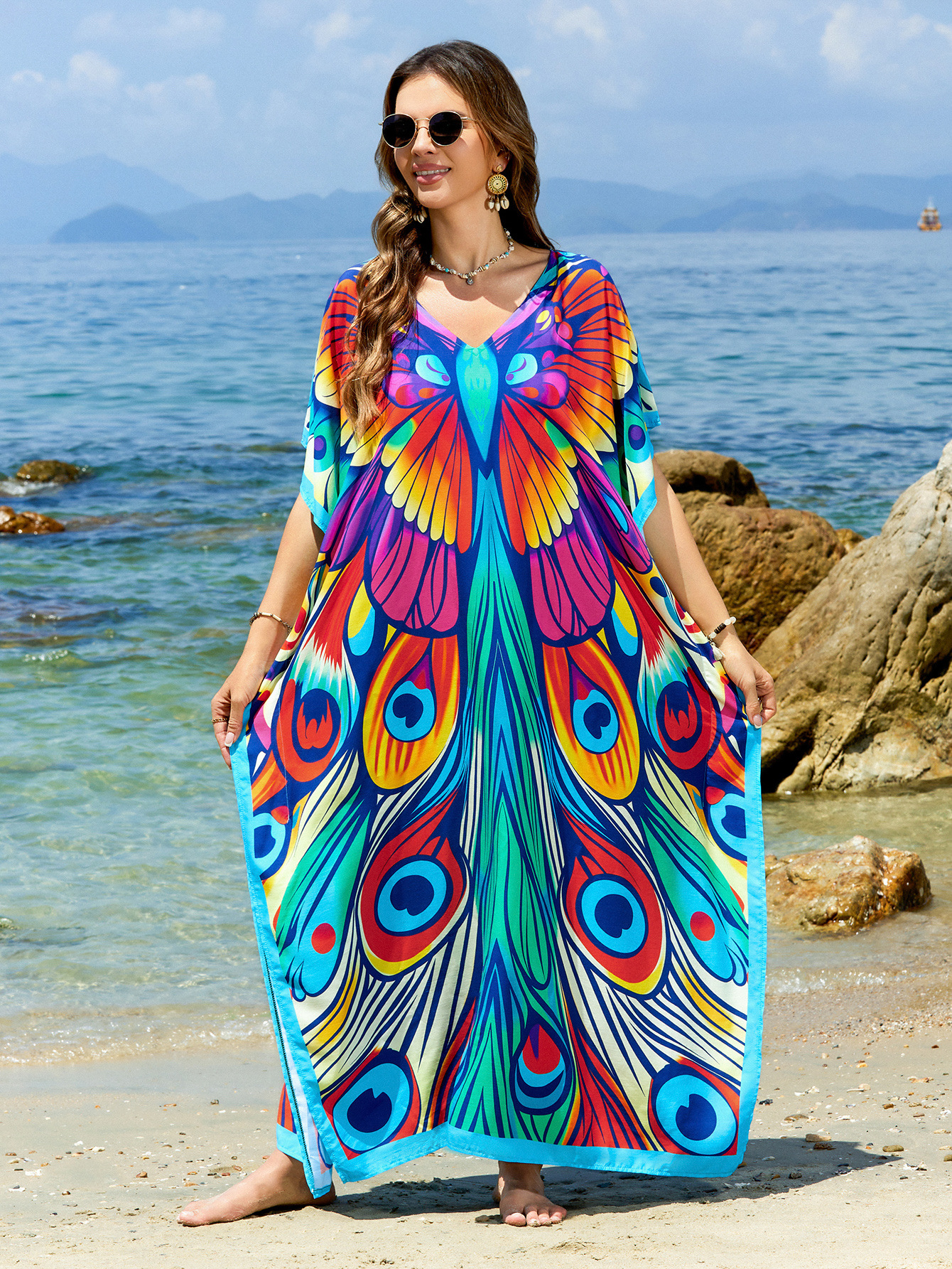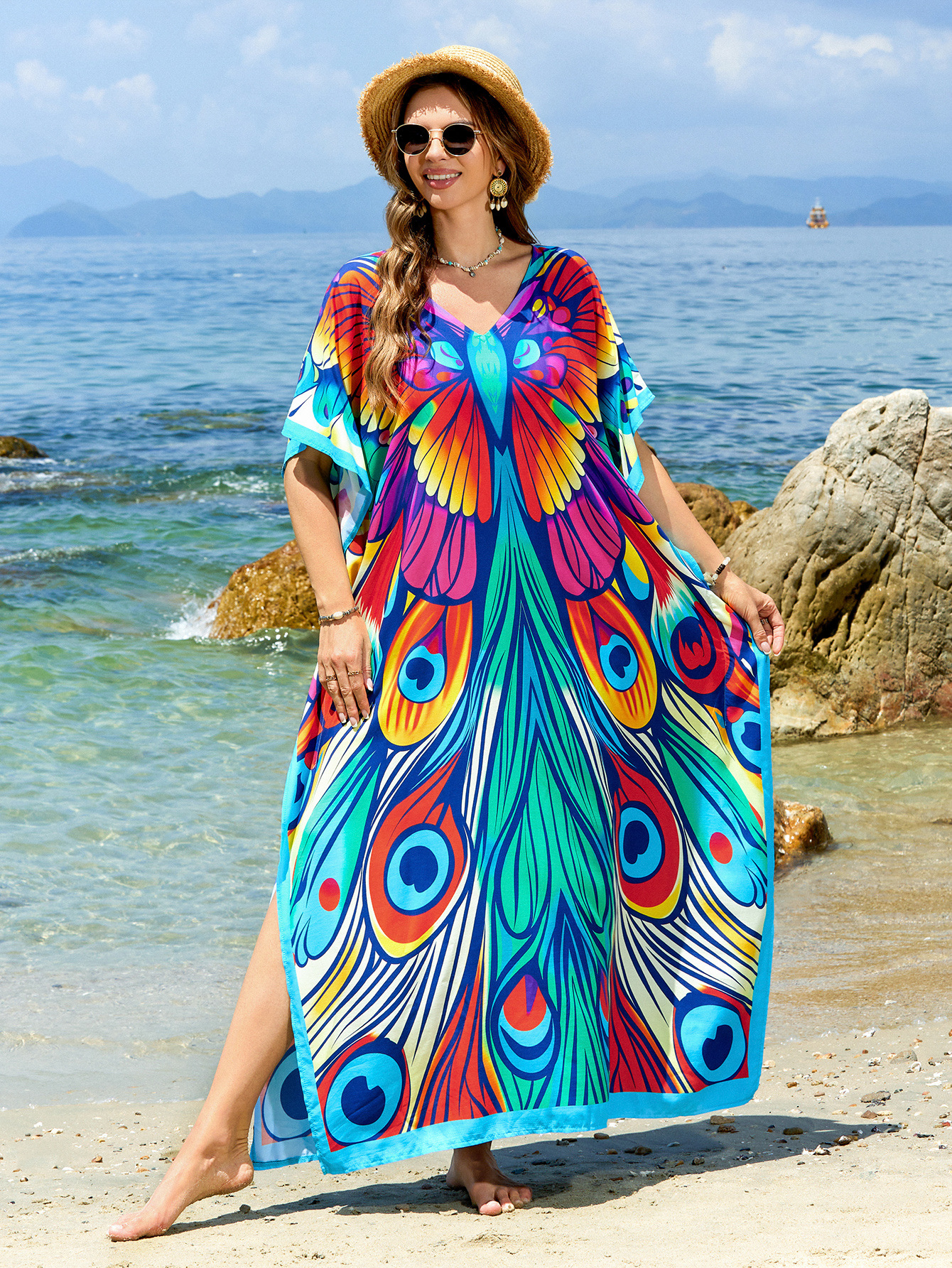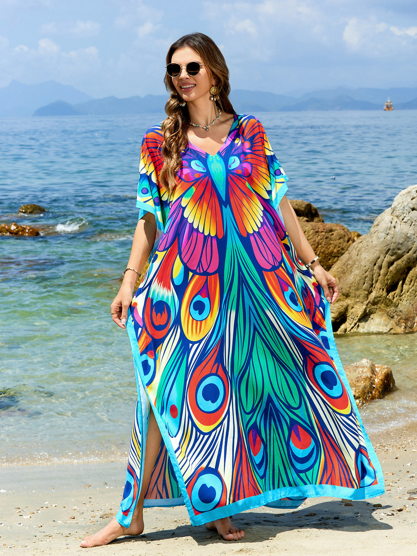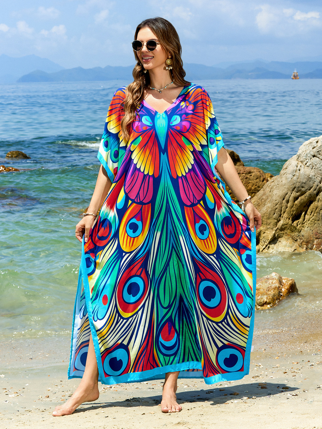 Накидка для пляжа, с принтом, отпускной халат, платье-купальник, на Амазон 1126 (32 цвета) F