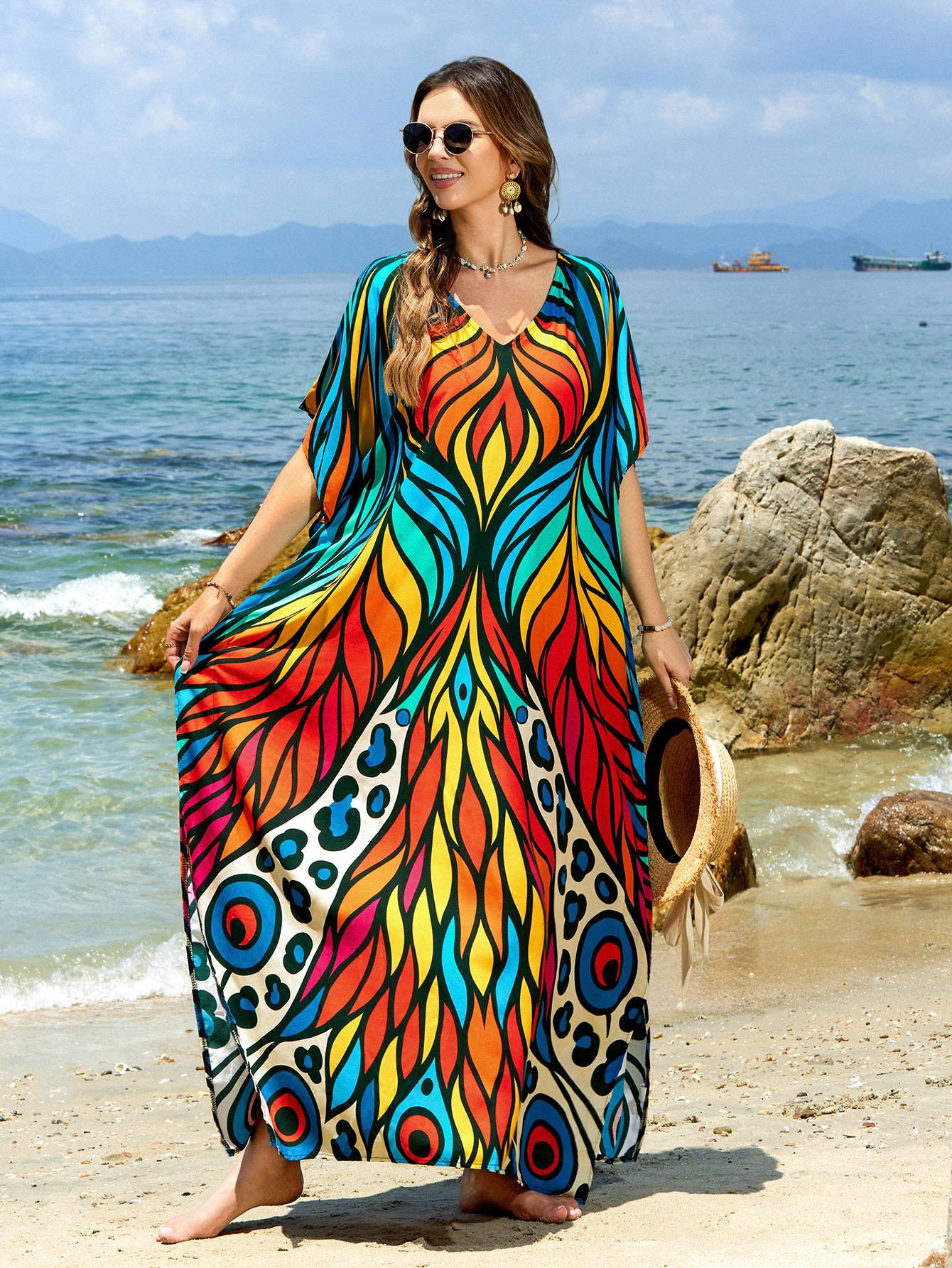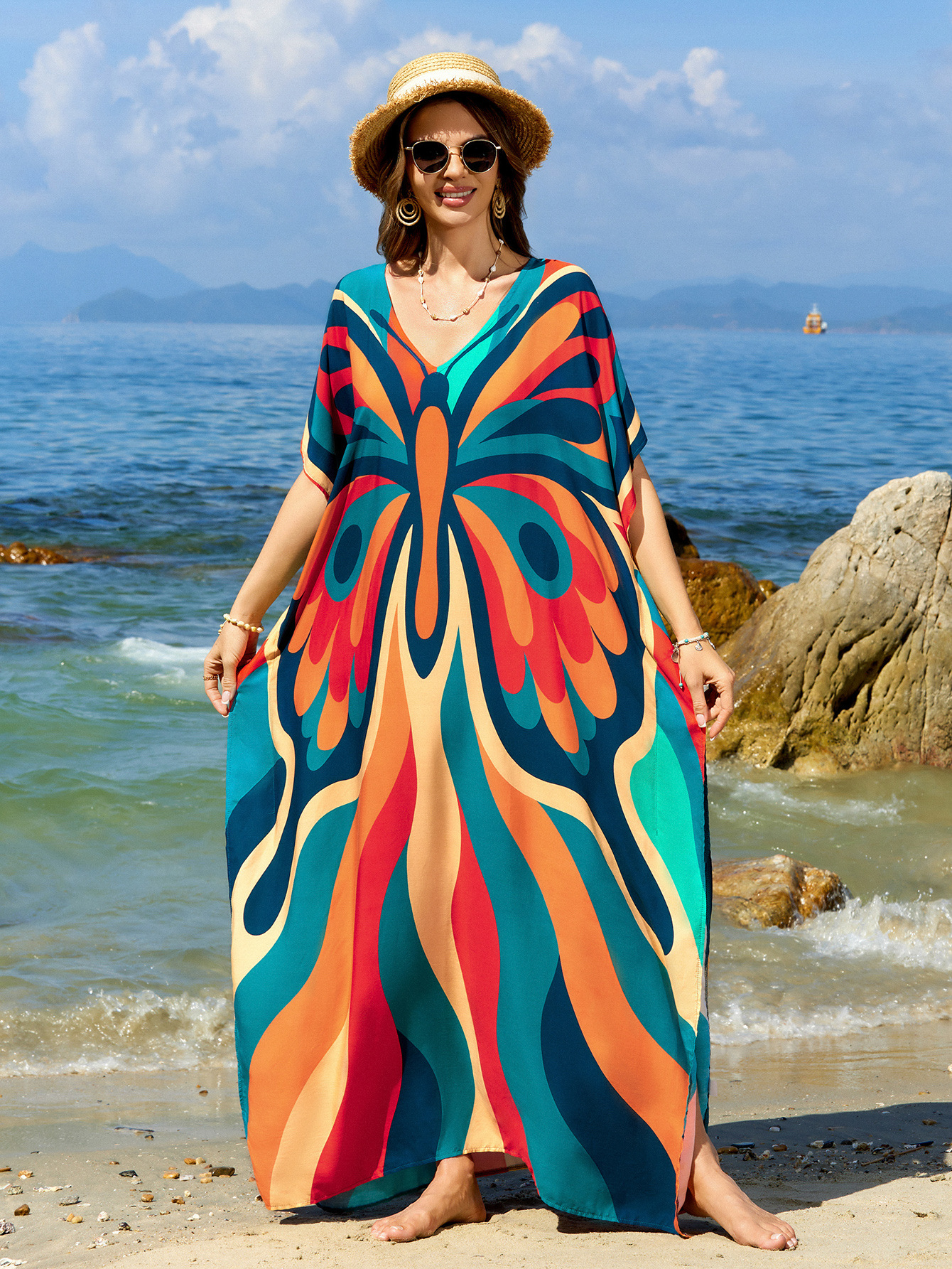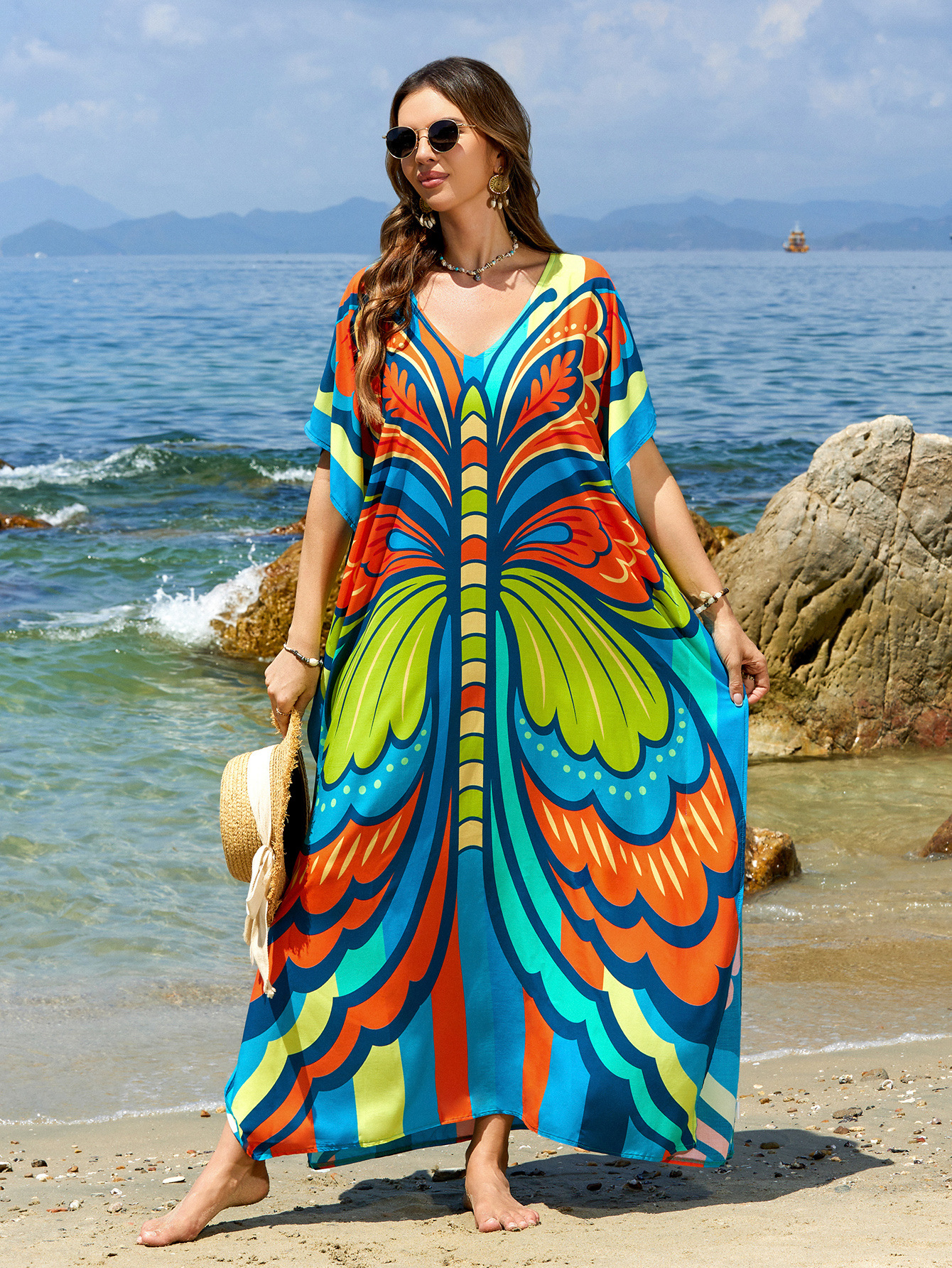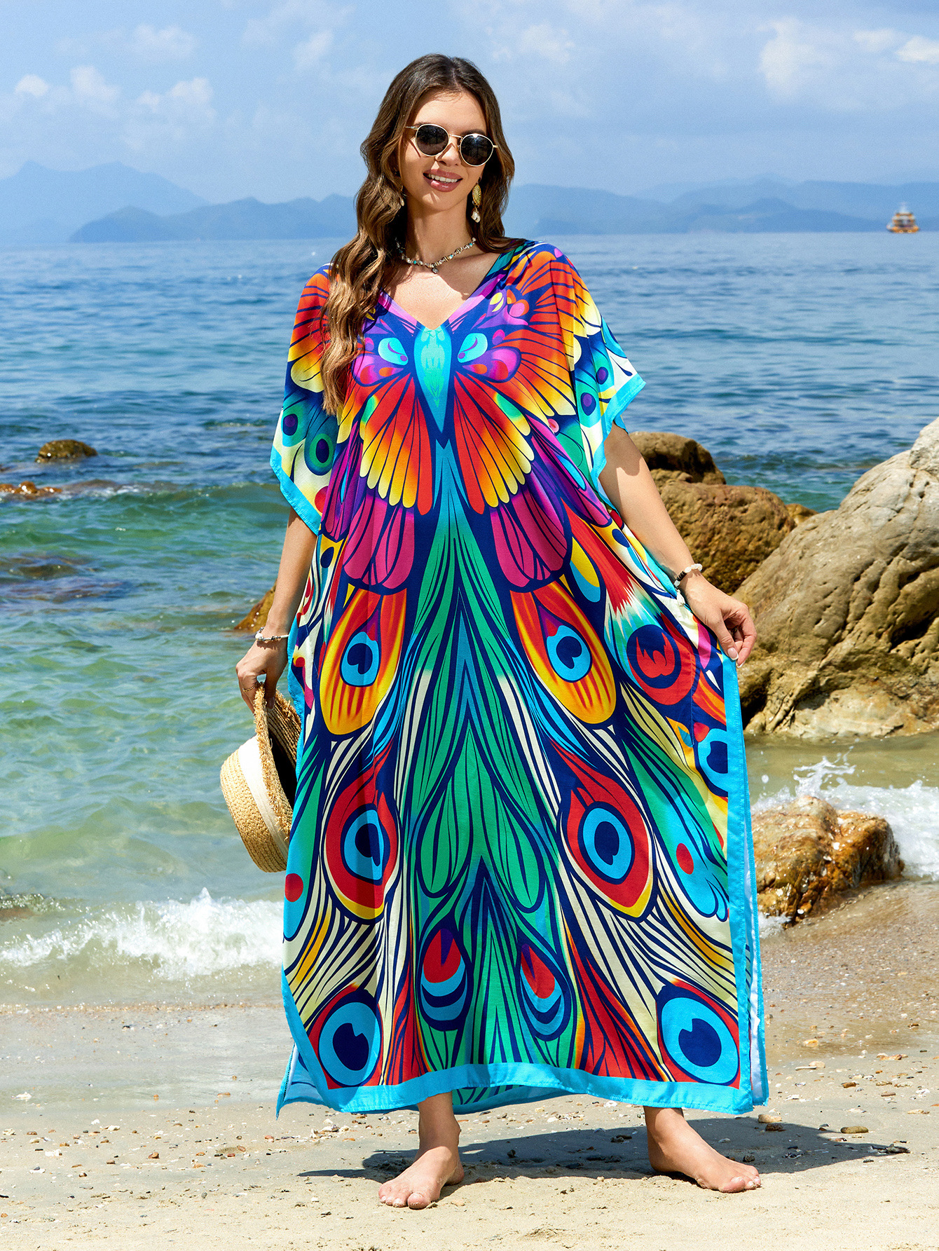 Накидка для пляжа, с принтом, отпускной халат, платье-купальник, на Амазон 1126 (32 цвета) F