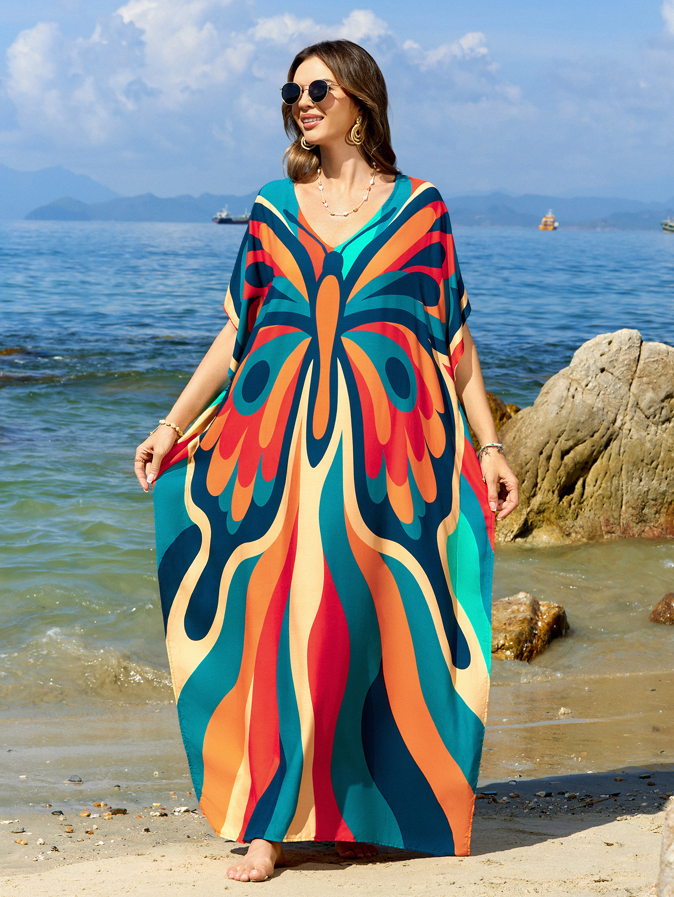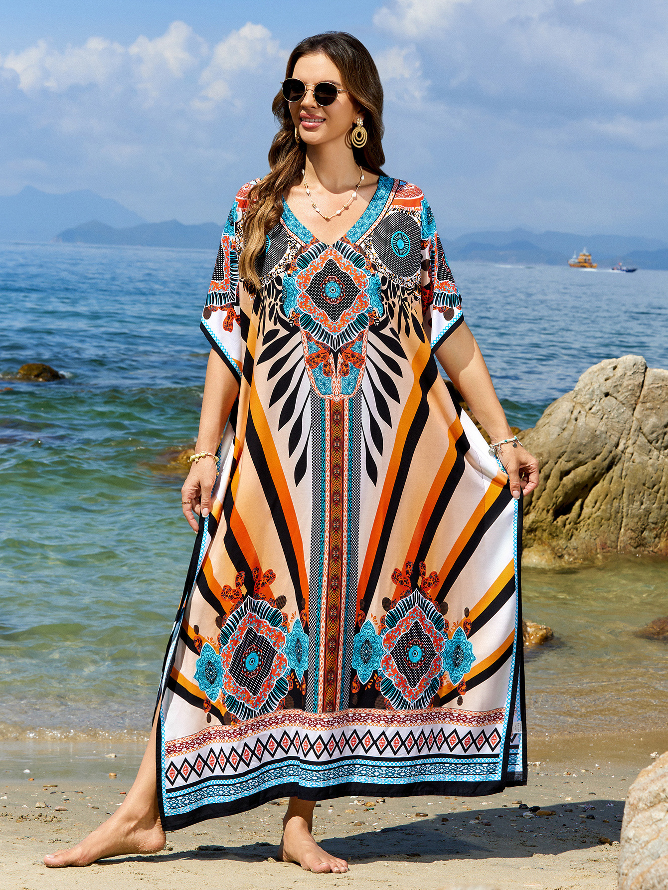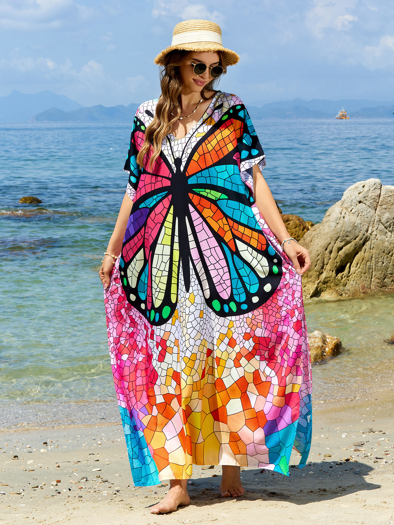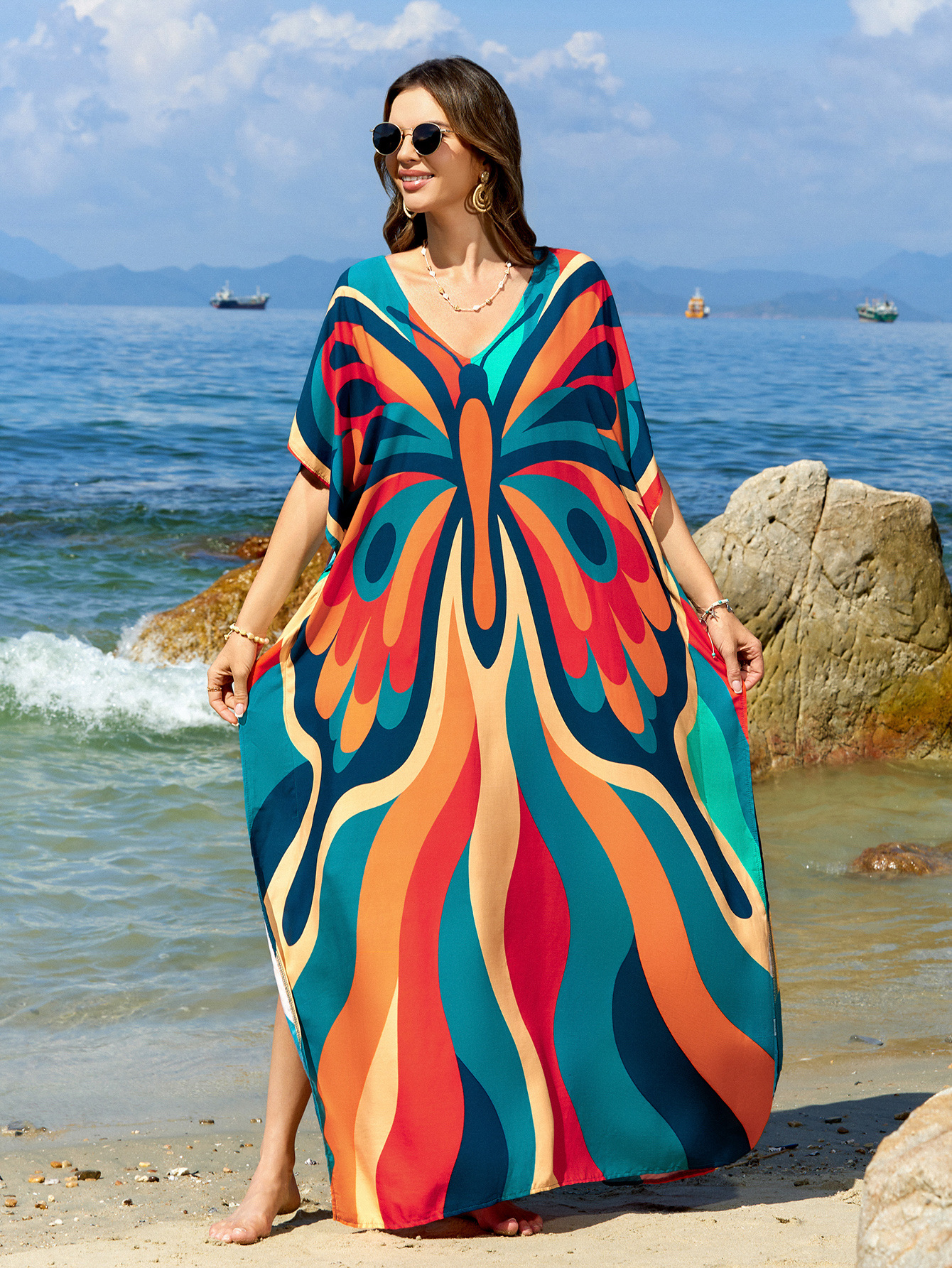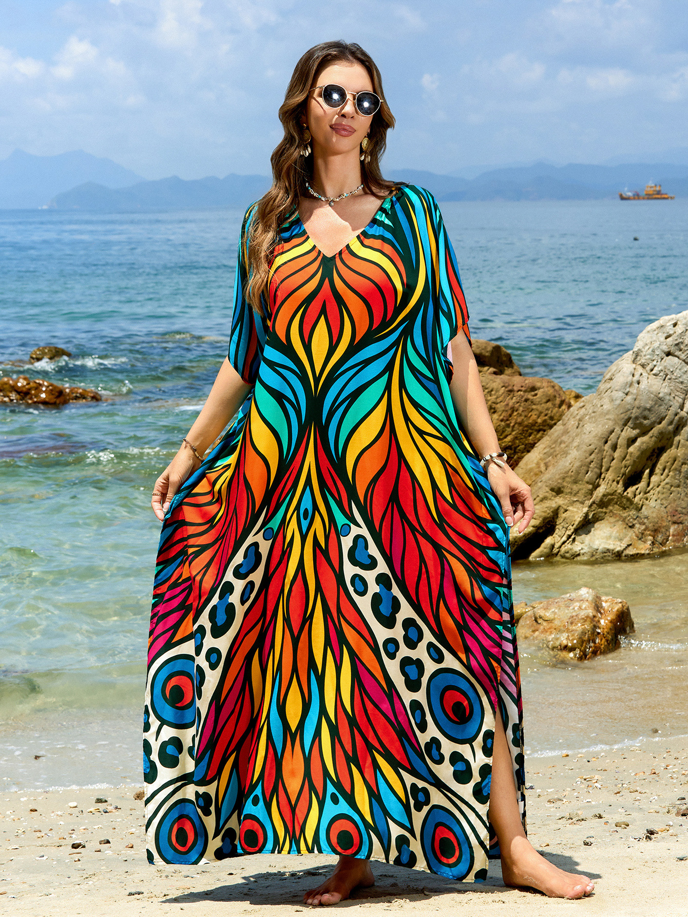 Накидка для пляжа, с принтом, отпускной халат, платье-купальник, на Амазон 1126 (32 цвета) F