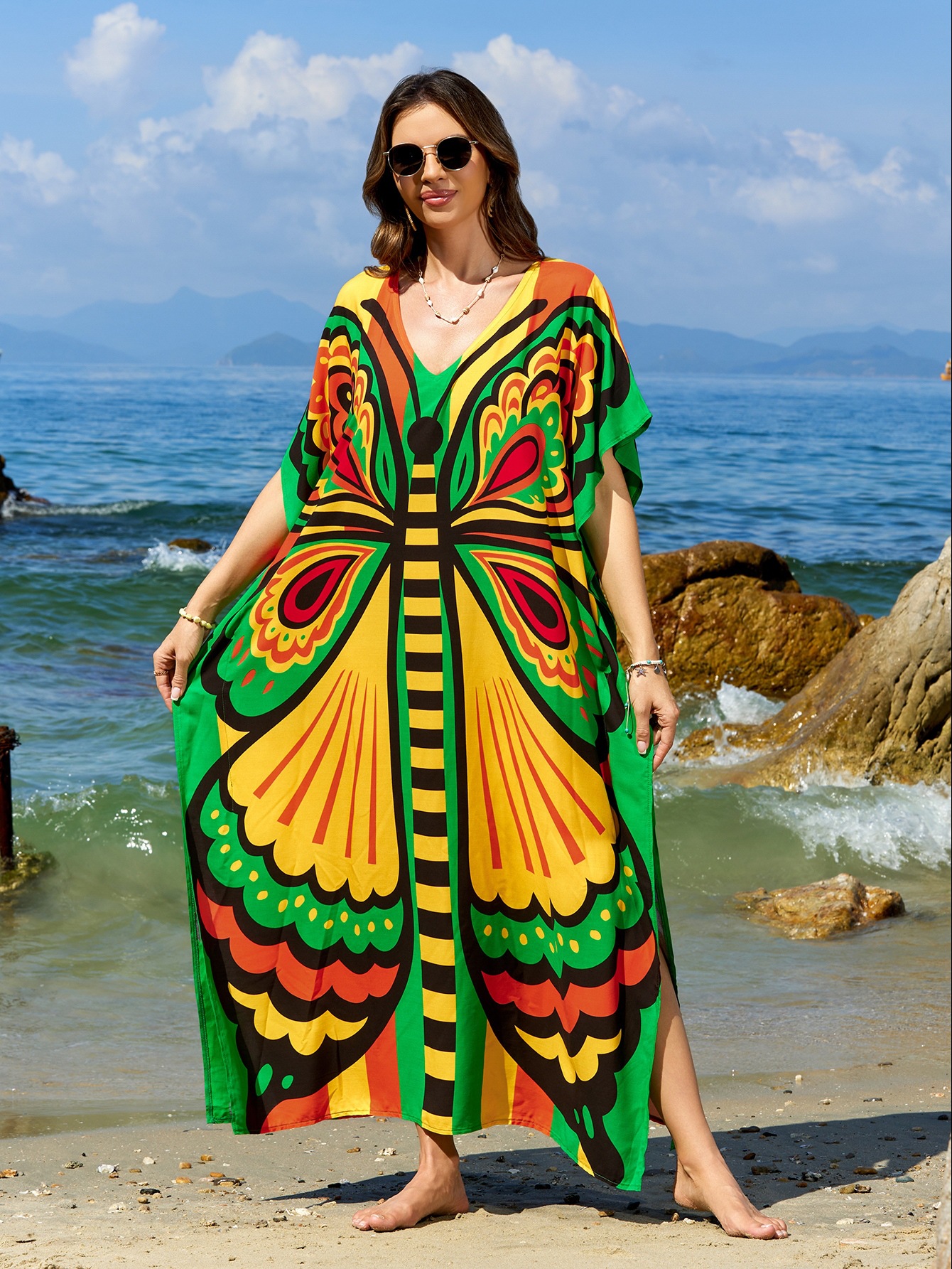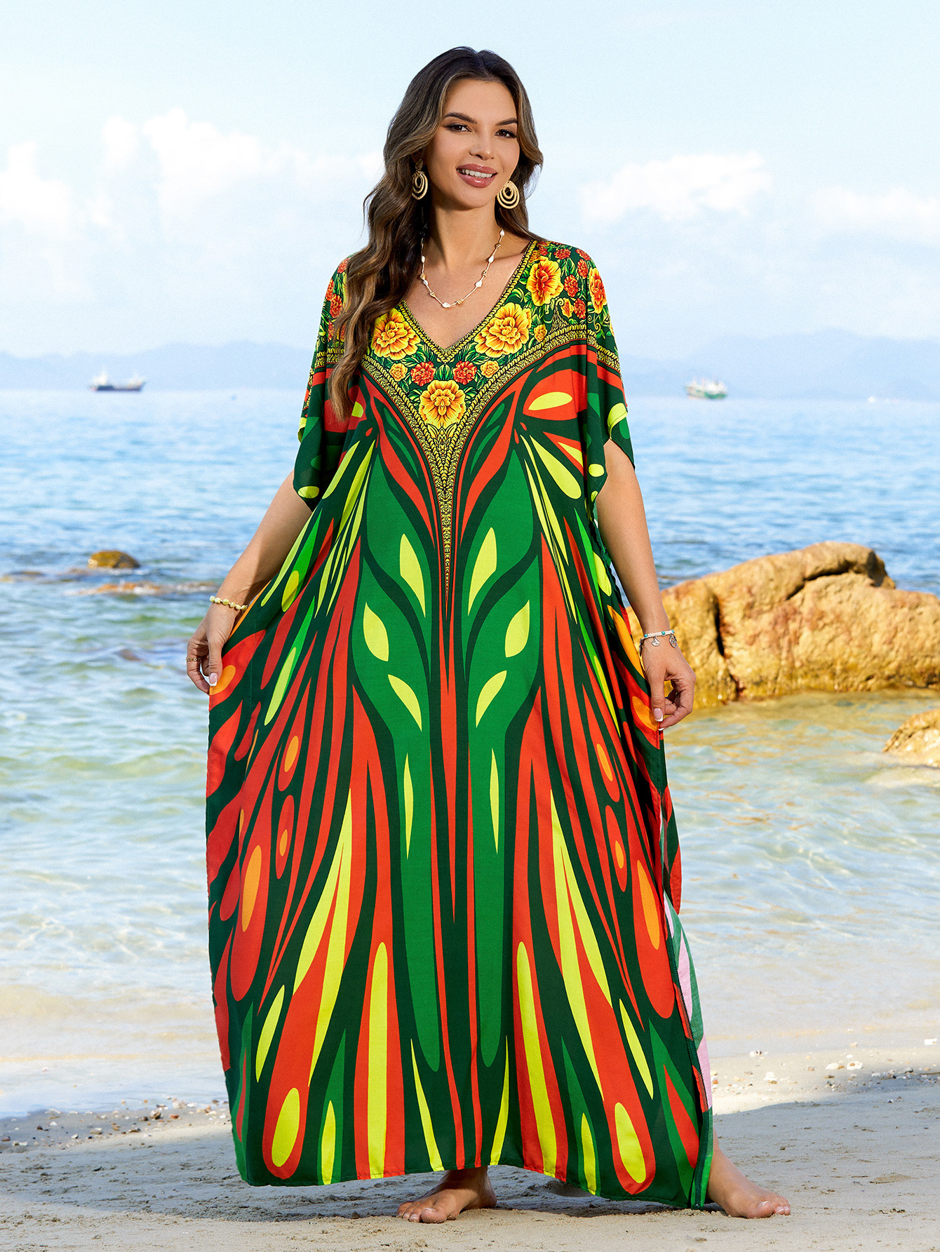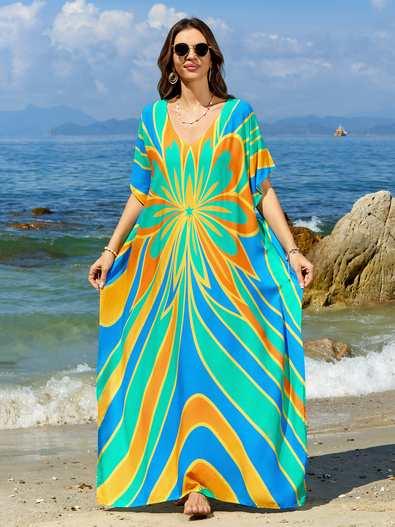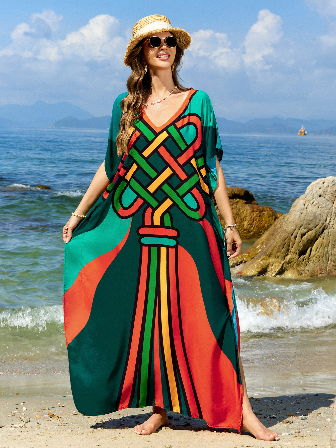 Накидка для пляжа, с принтом, отпускной халат, платье-купальник, на Амазон 1126 (32 цвета) F