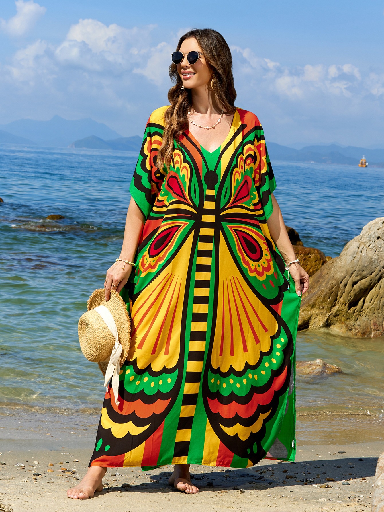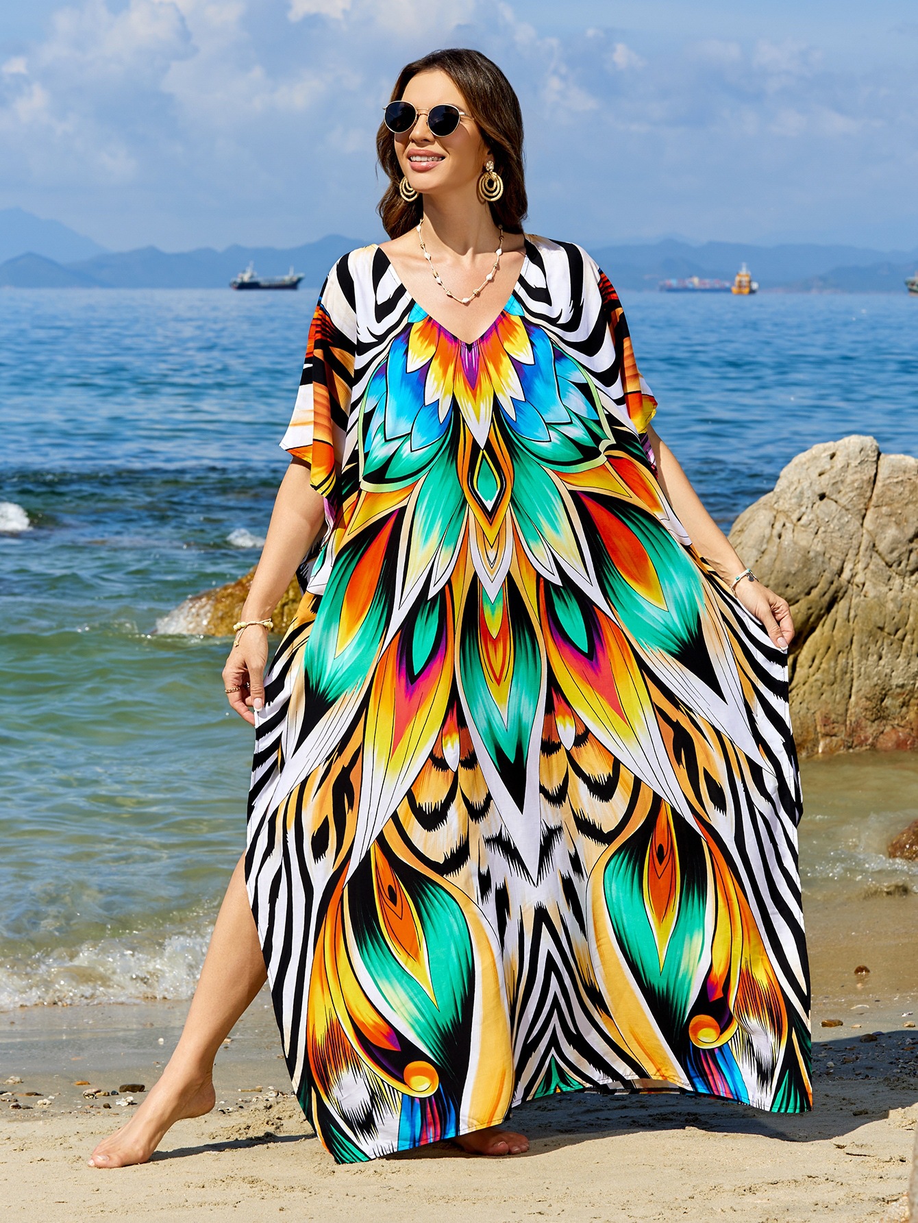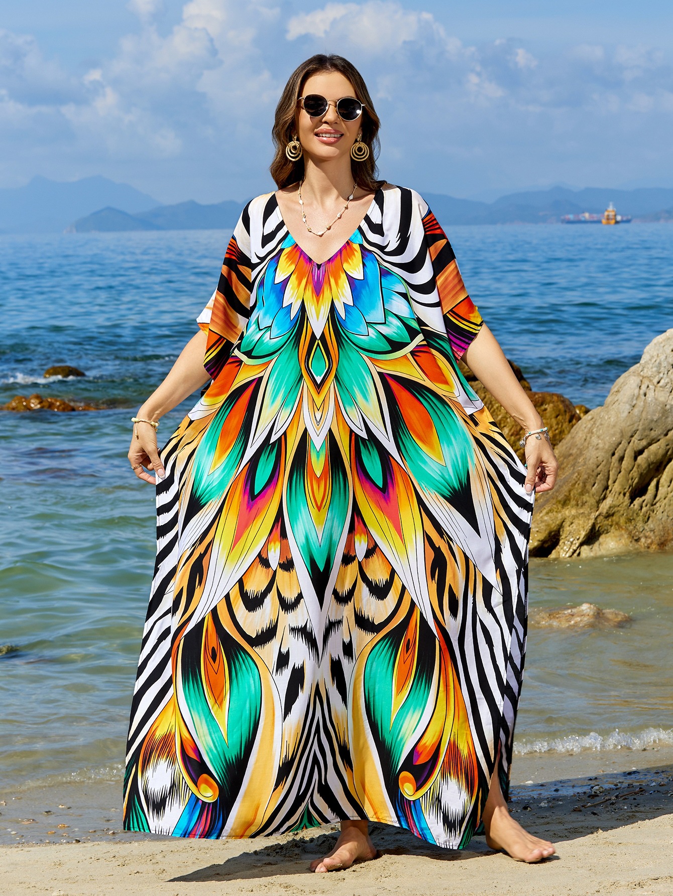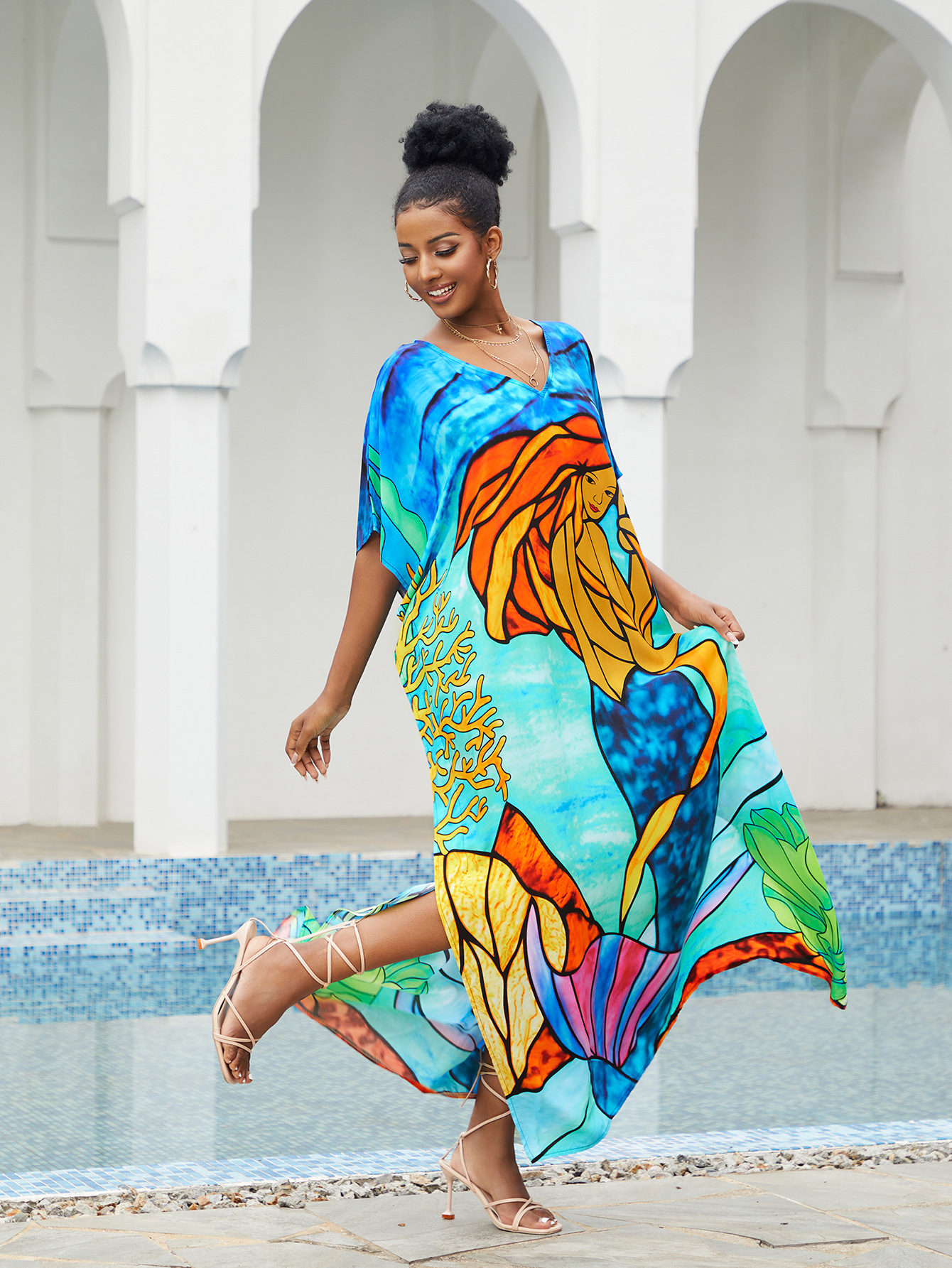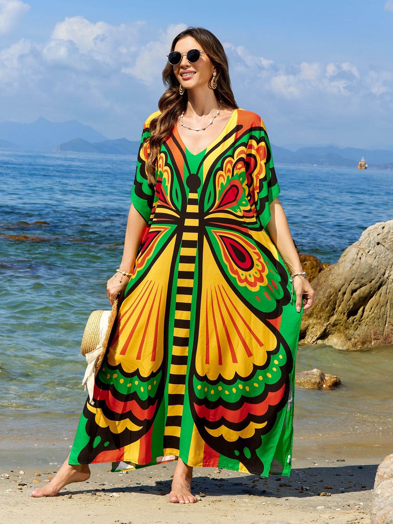 Накидка для пляжа, с принтом, отпускной халат, платье-купальник, на Амазон 1126 (32 цвета) F