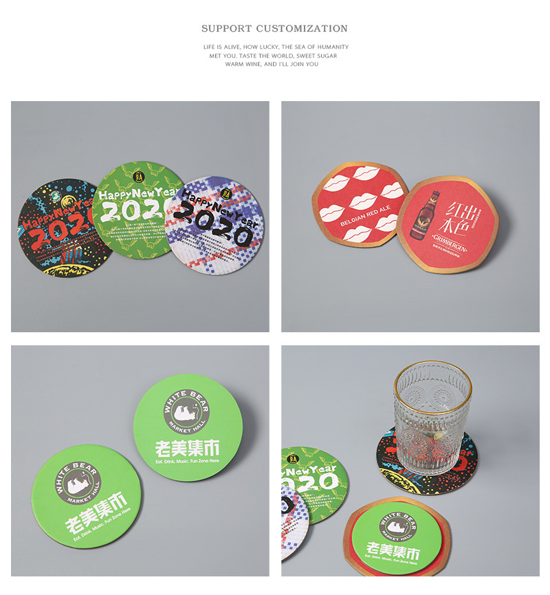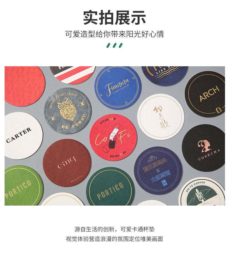 Индивидуальные бумажные подставки оптом, абсорбирующие бумажные подставки, покрытые бумажные подставки, для чая, кружек, с печатью логотипа