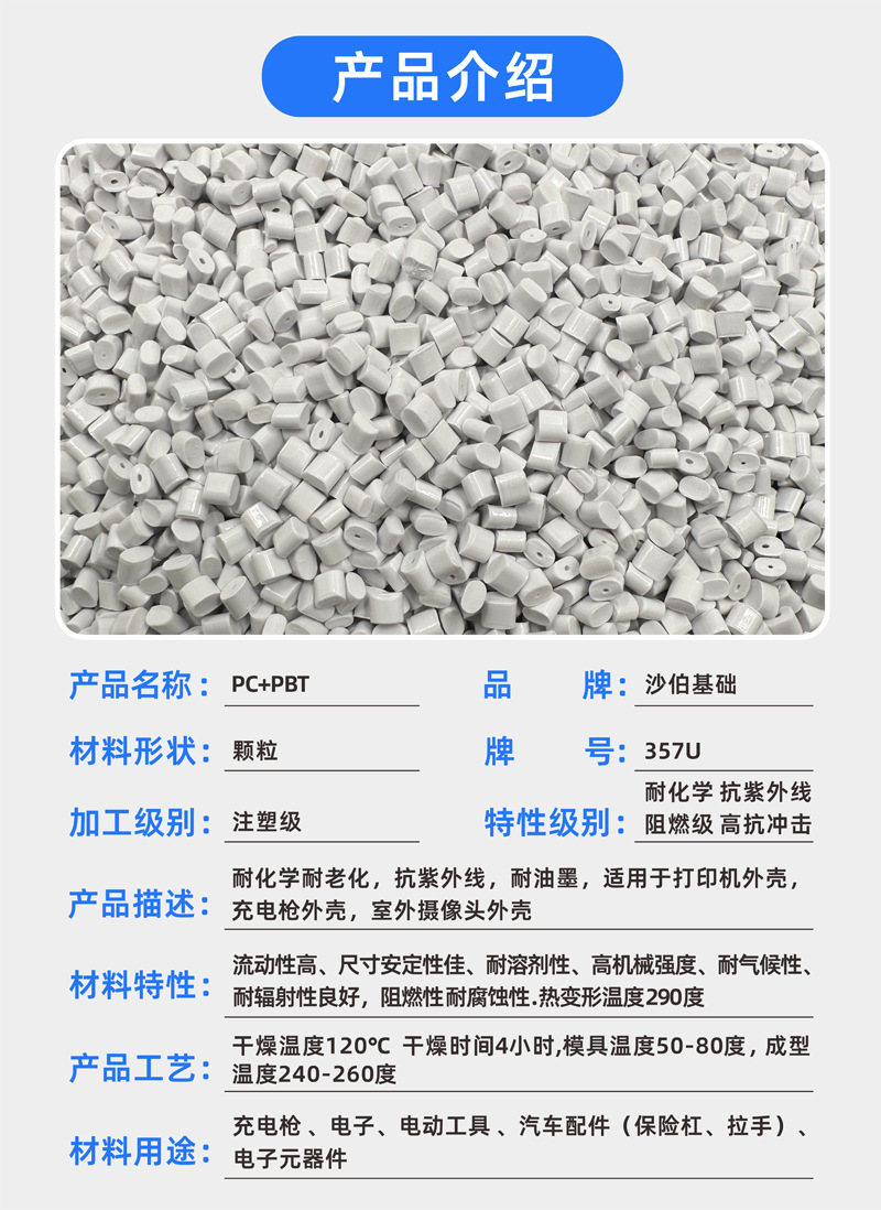 PC/PBT357U阻燃V0抗紫外线耐老化耐高温耐水解充电枪外壳原料