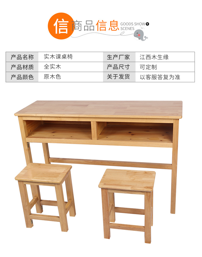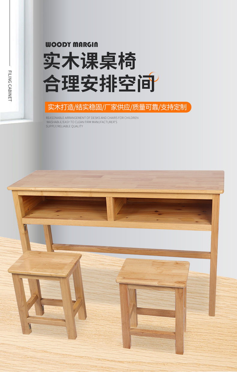 Двойной стол и стул из массива дерева для учеников средней и начальной школы