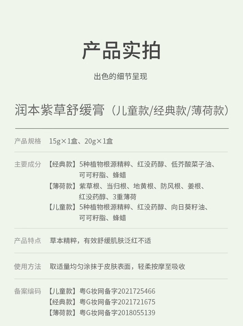 ![]() | Lithospermum soothing ointment (for children aged 0 years old) 15g | ¥9.36 / ≈ 114 ₽ | 9270 | 5938068062451 | |