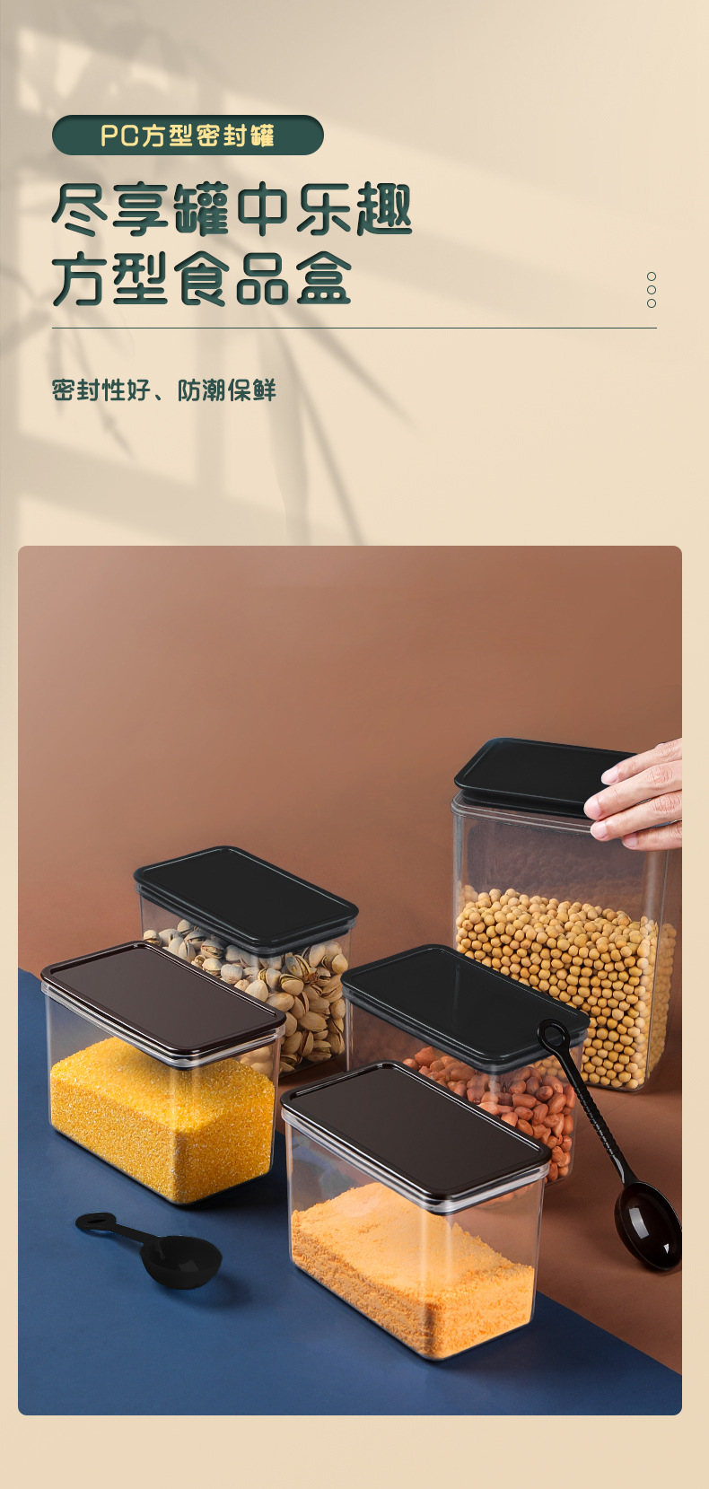 Пластиковая квадратная банка для фруктового порошка и кофе, прозрачная для хранения пищи
