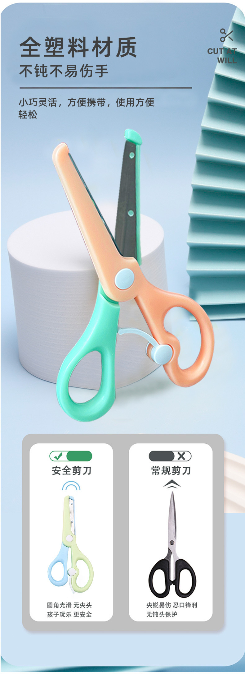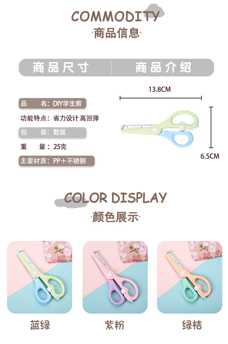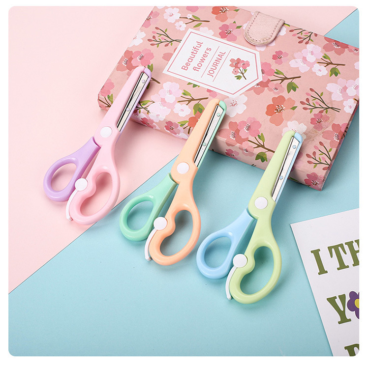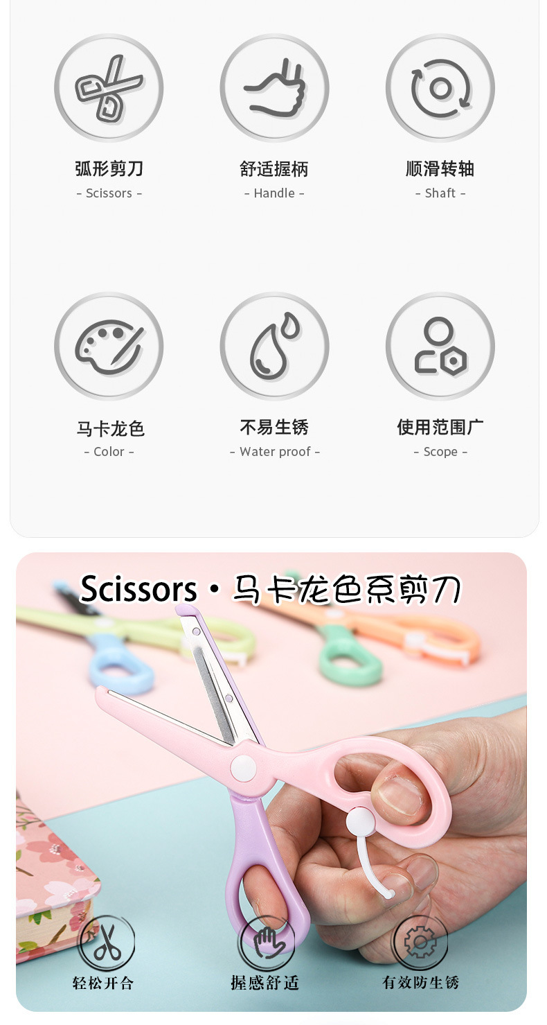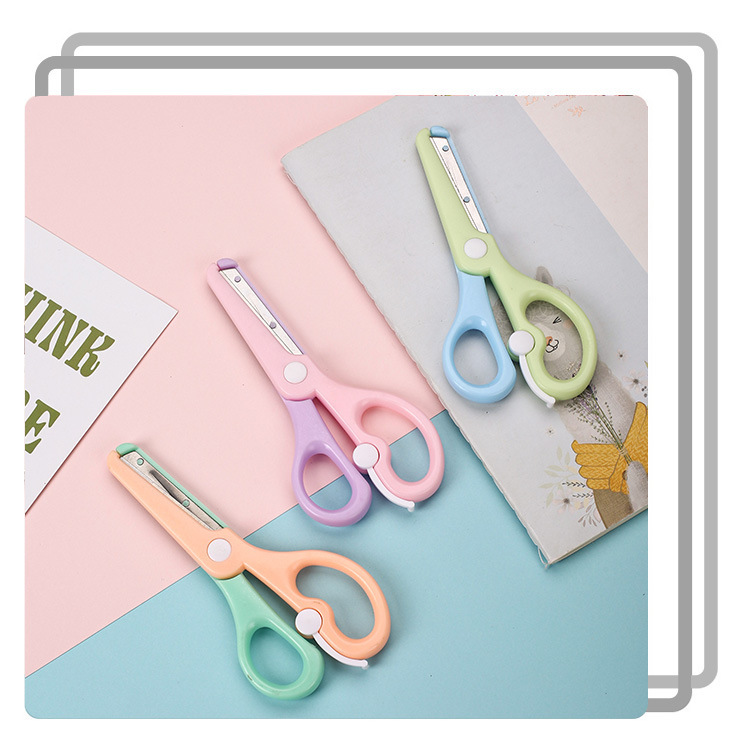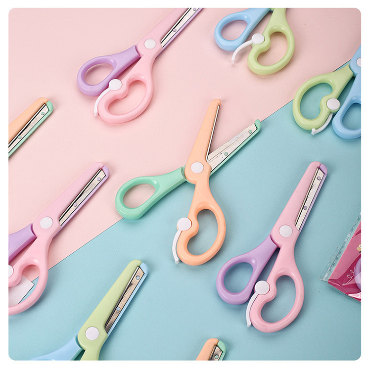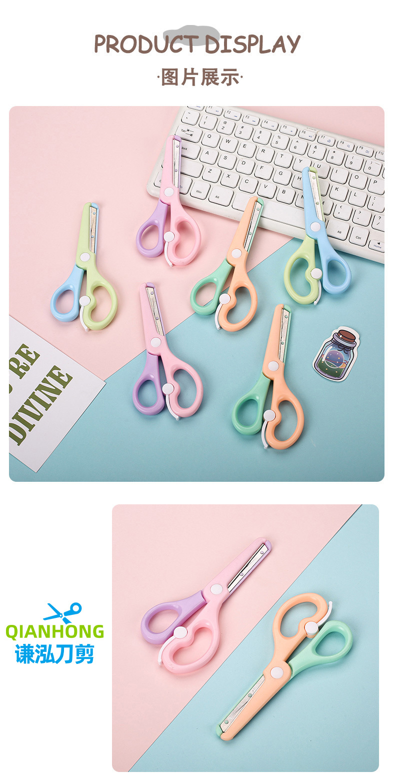 Канцелярские ножницы Qian Hong нового макаронного цвета, безопасные ножницы для детей, ножницы для резки бумаги, мультяшные антищипковые эластичные пластиковые ножницы