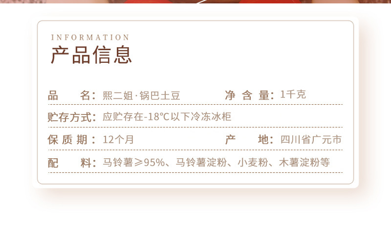 ![]() | Xi erjie crispy rice potatoes 1kg | 2шт: ¥18.00, 10шт: ¥16.00 | 4219 | 5197014638756 |