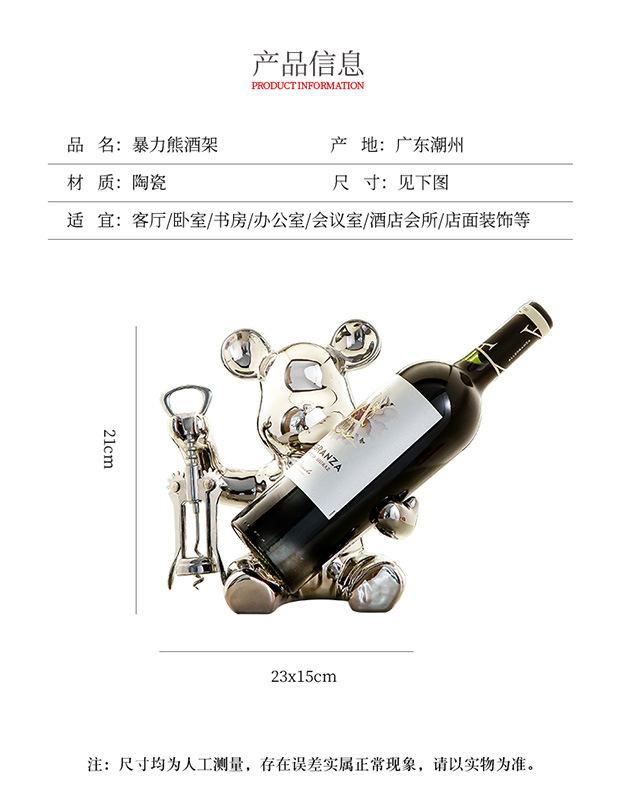 ![]() | Silver violent bear wine rack model b (comes with bottle opener) | Height 23cm length 21cm width 15cm | ¥25.0 / ≈ 304 ₽ | 19290 | 5922163424013 | |