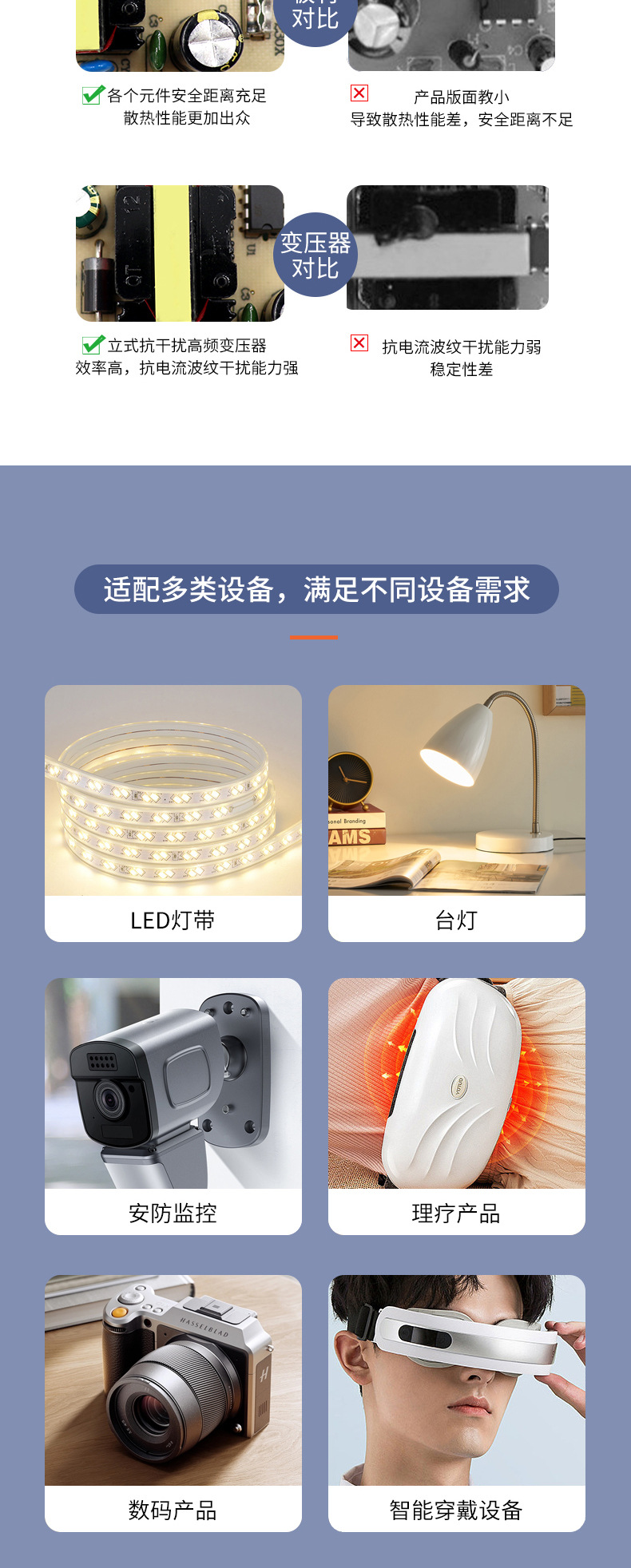 Применимые продукты Massager LED light strip surveillance camera Speaker hard disk set top box router etc