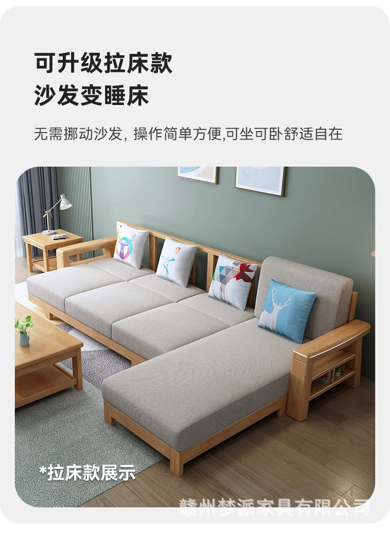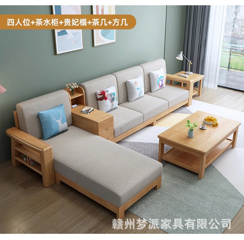 Скандинавский диван из массива дерева, комбинация, современный простой, трехместный диван-кровать, для малой квартиры, тканевый диван из бревна