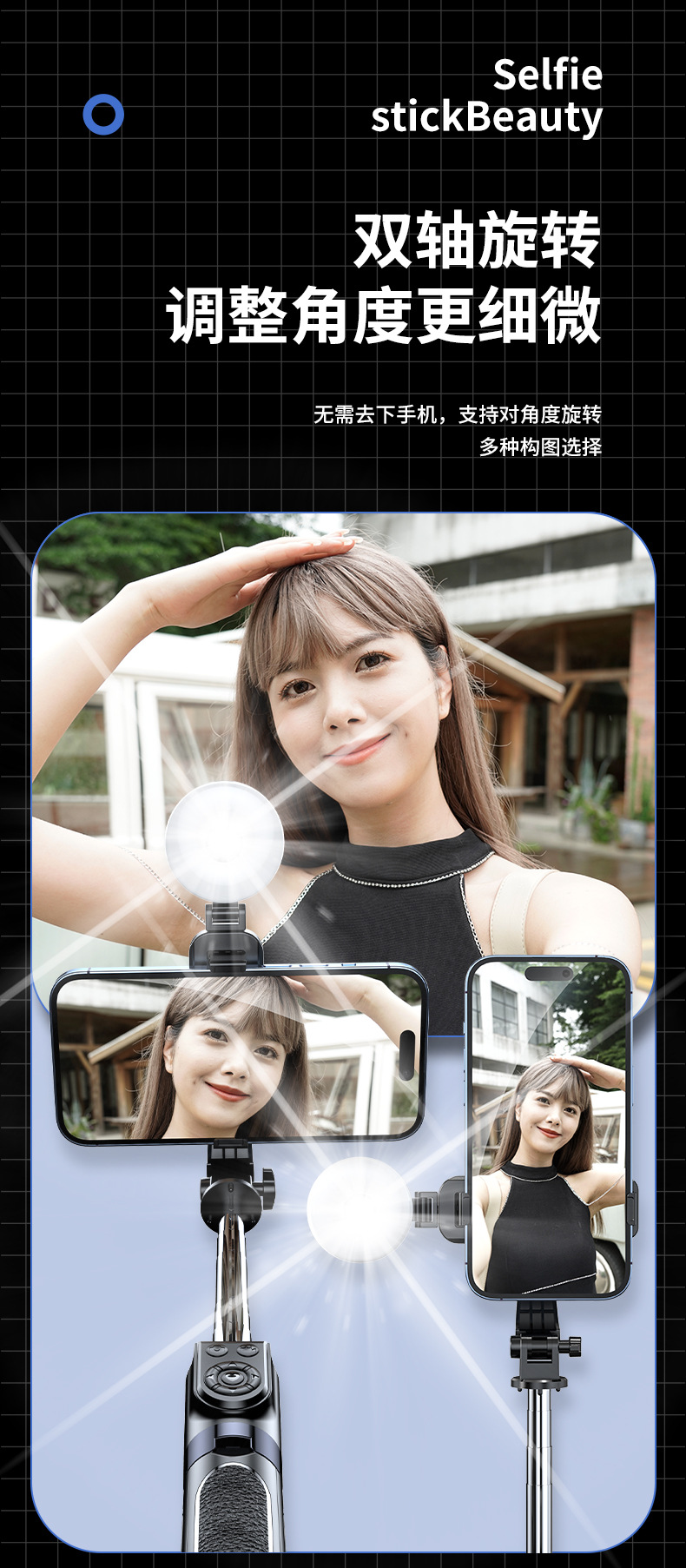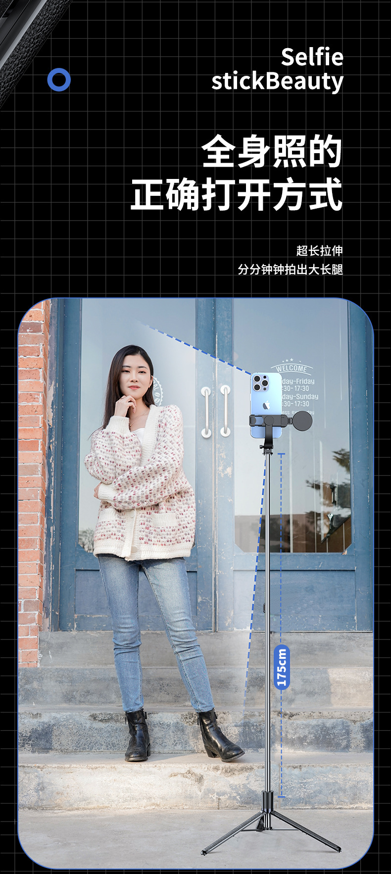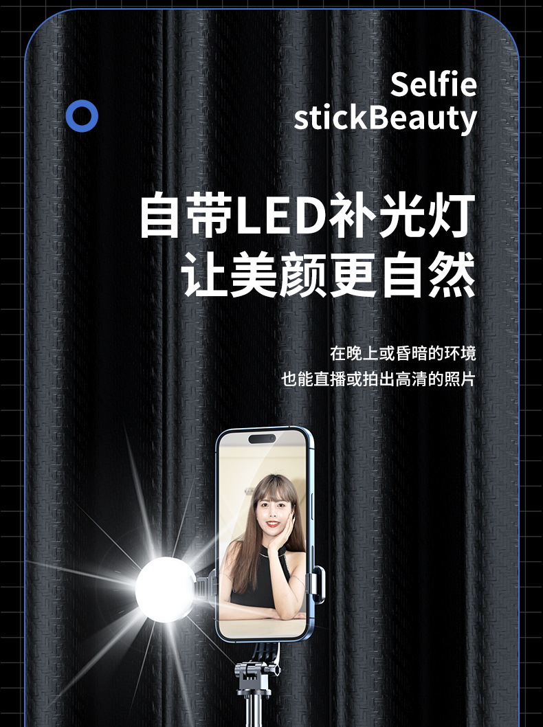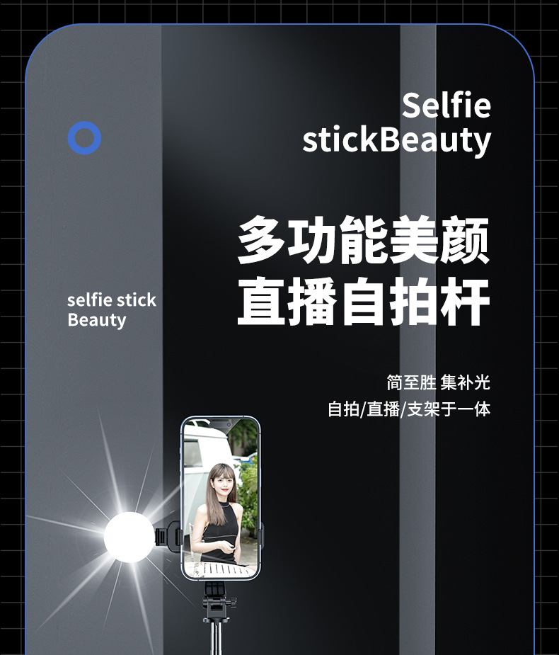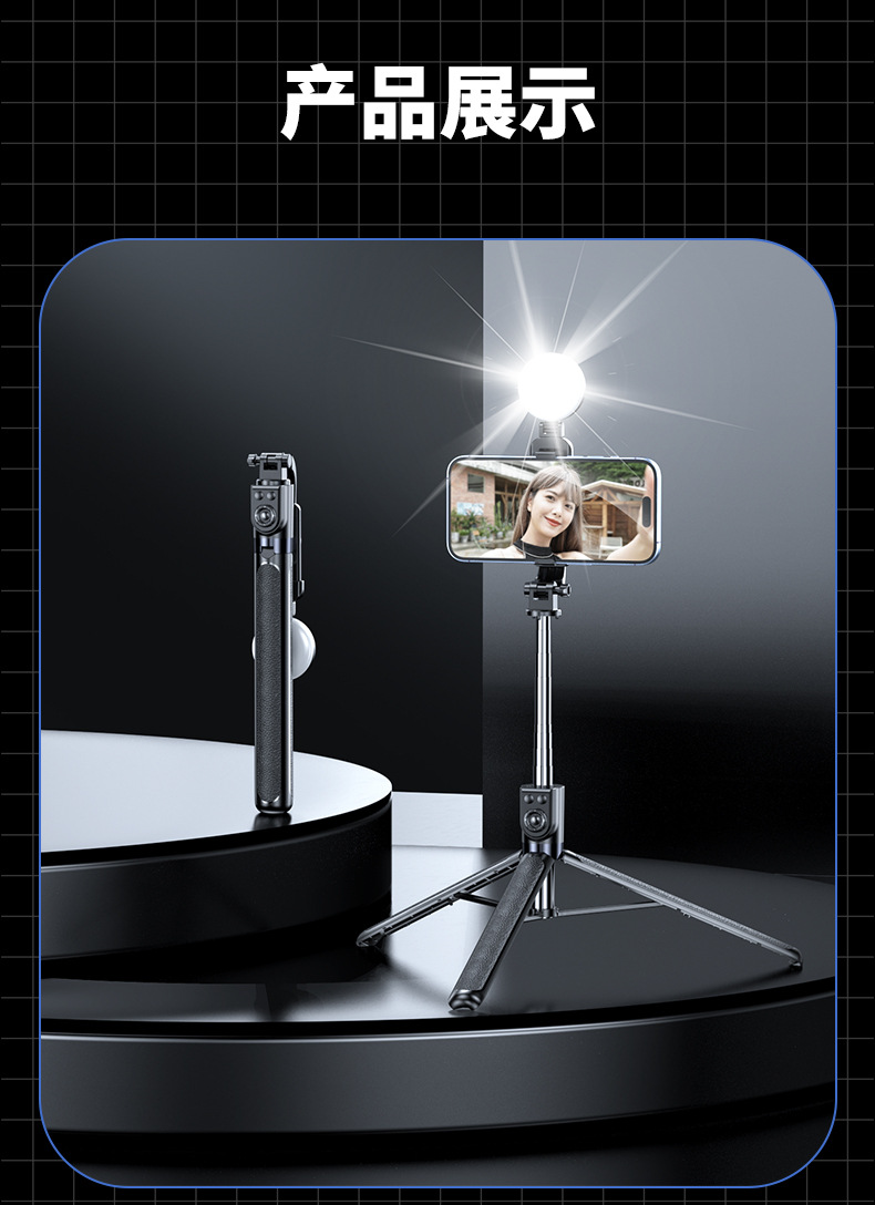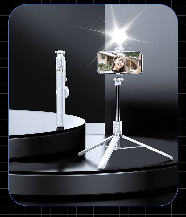 Селфи-палка 1.8 м с Bluetooth и заполняющим светом, портативная и выдвижная, 1.7 м для съемки видео TikTok, Bluetooth дистанционное управление