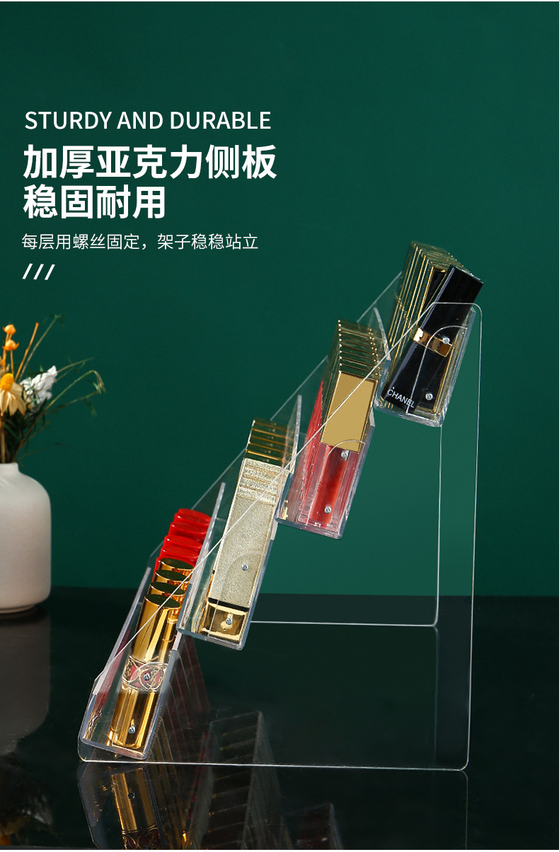 Прозрачный стеллаж для губной помады, акрилный лестничный дисплей, коробка для хранения блеска для губ, стеллаж большой емкости