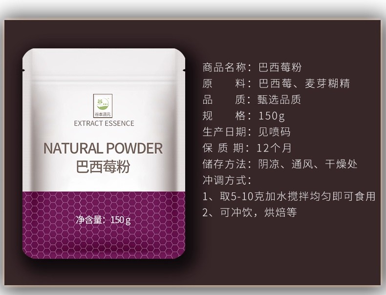 Порошок ягод асаи, натуральный заменитель пищи, порошок для молочных коктейлей, упаковка с порошком из ягод