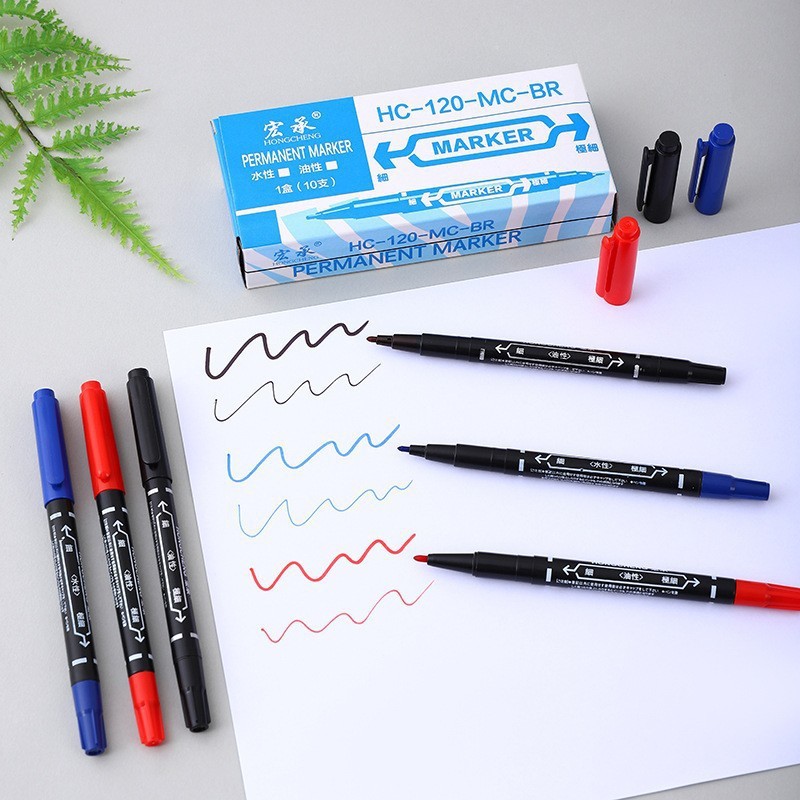 各位新老客户请注意:此款双头记号笔的外包装写了油性,但记号笔是水性的,并非油性的,因为外包装是通用的,所以在此说明。请拍的亲们注意了哦。