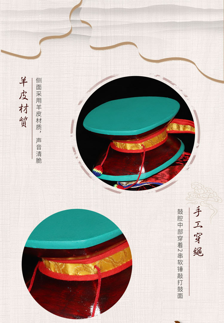 尼泊尔小手鼓方鼓羊皮法鼓黑色 棕色 枣红色赠送飘带鼓套声音清脆