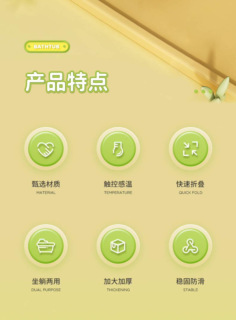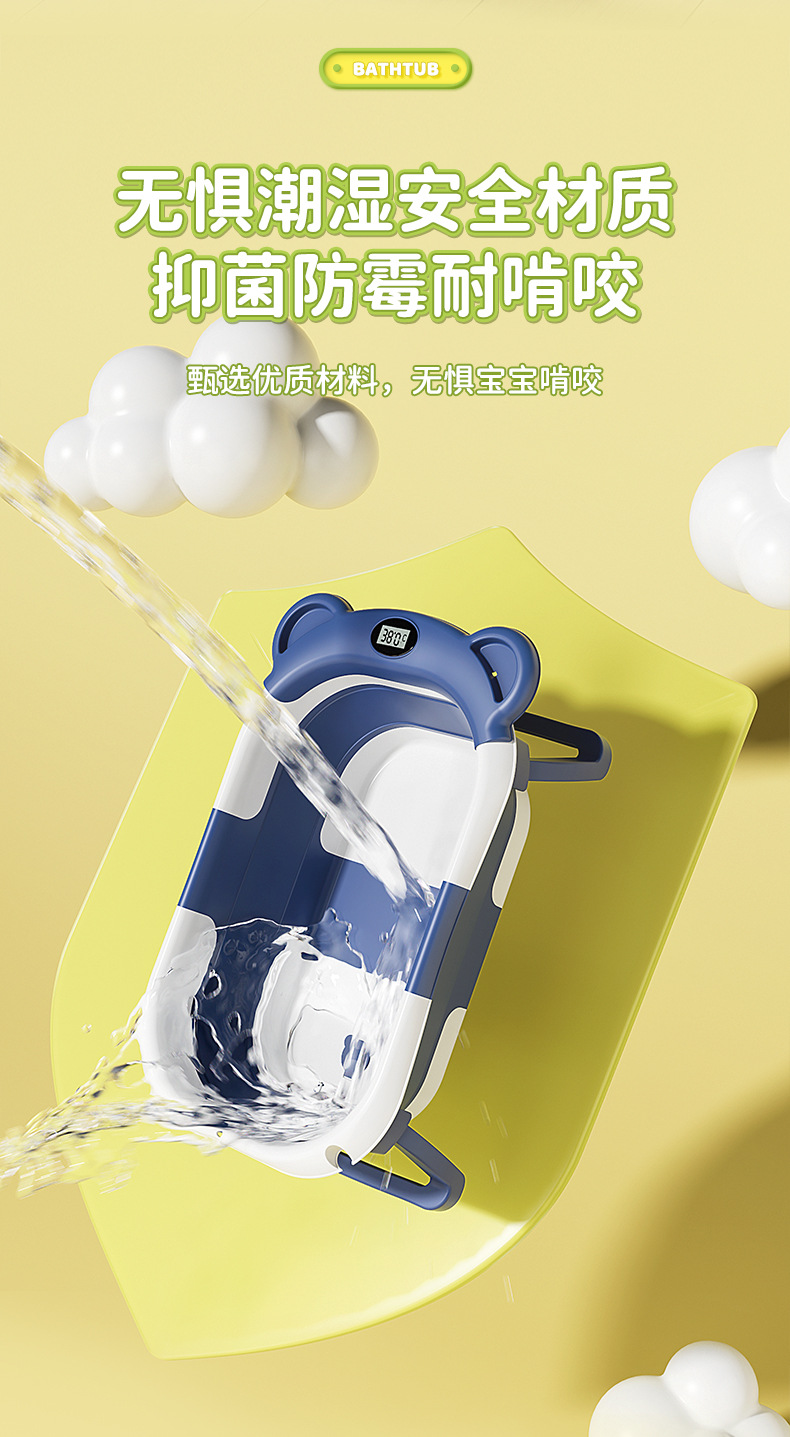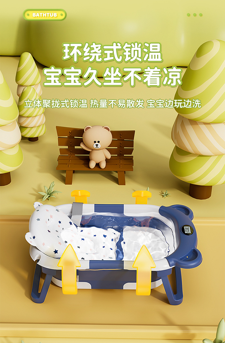 Большая ванна для купания, чувствительная к температуре, складная, для новорожденных