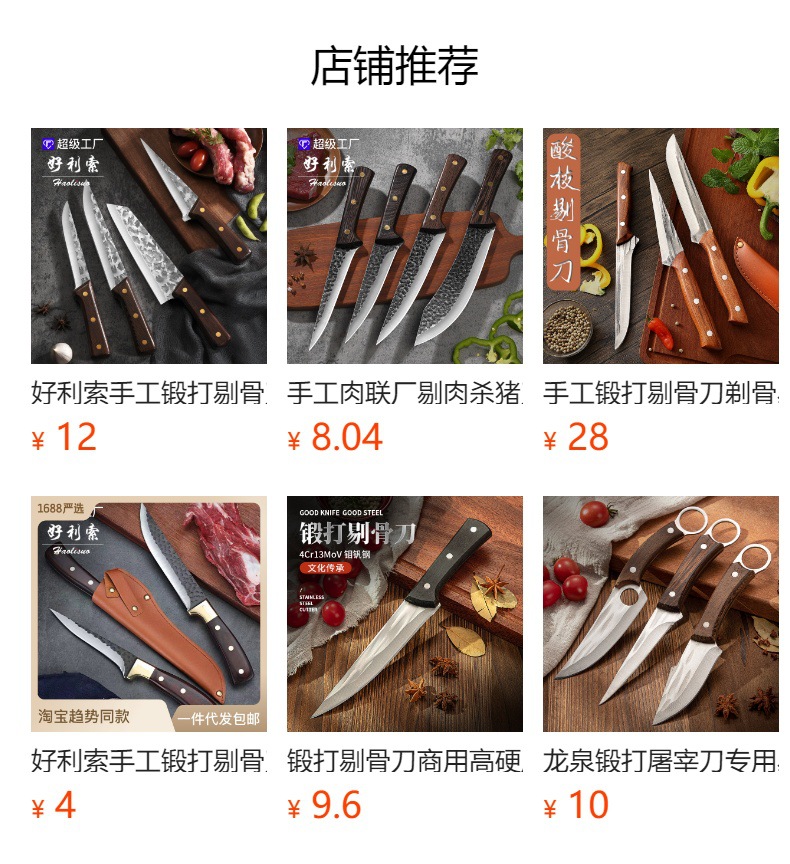 ![]() | [boning knife]-imitation wooden handle | ¥2.9 / ≈ 35 ₽ | 30111 | 5126077124800 | |