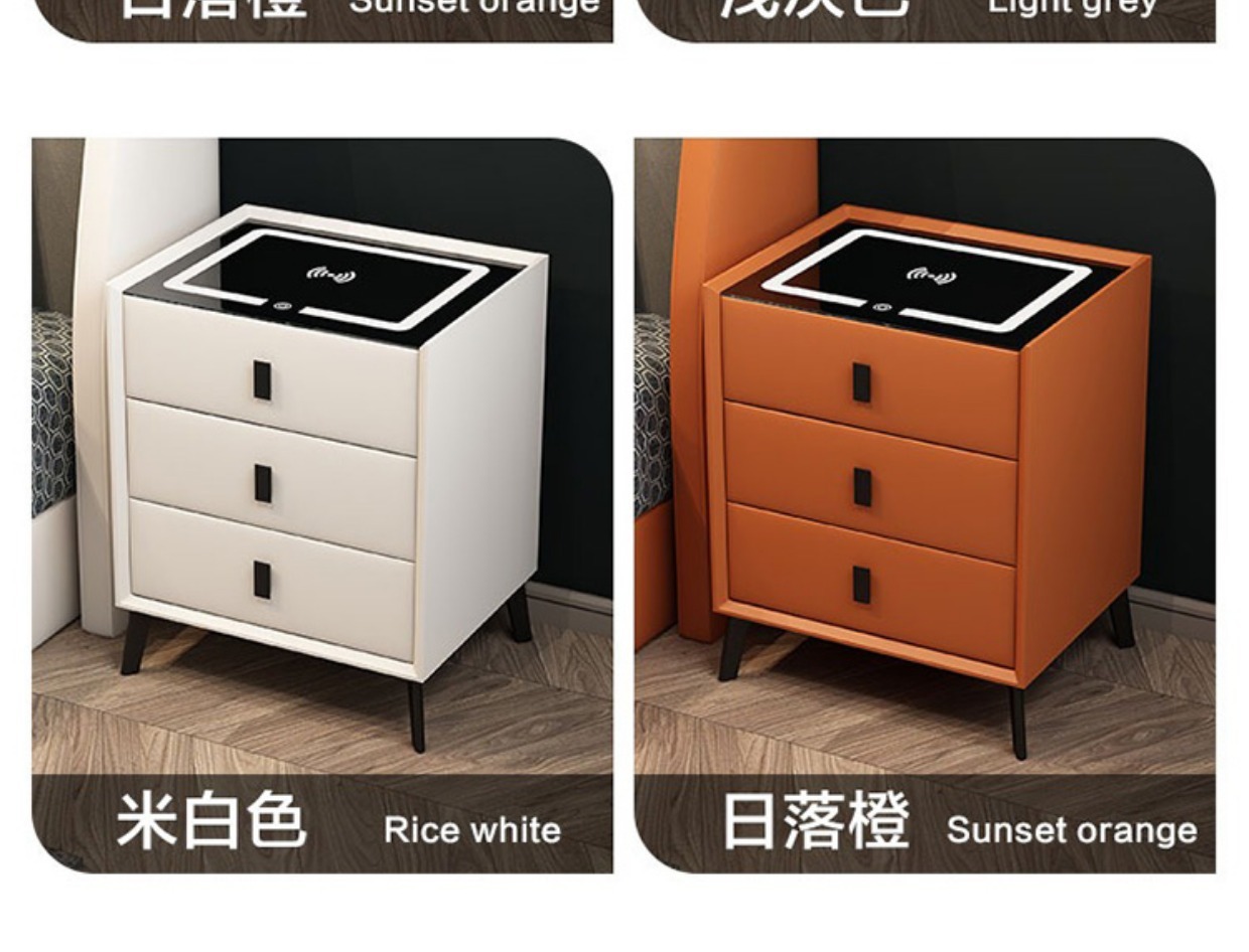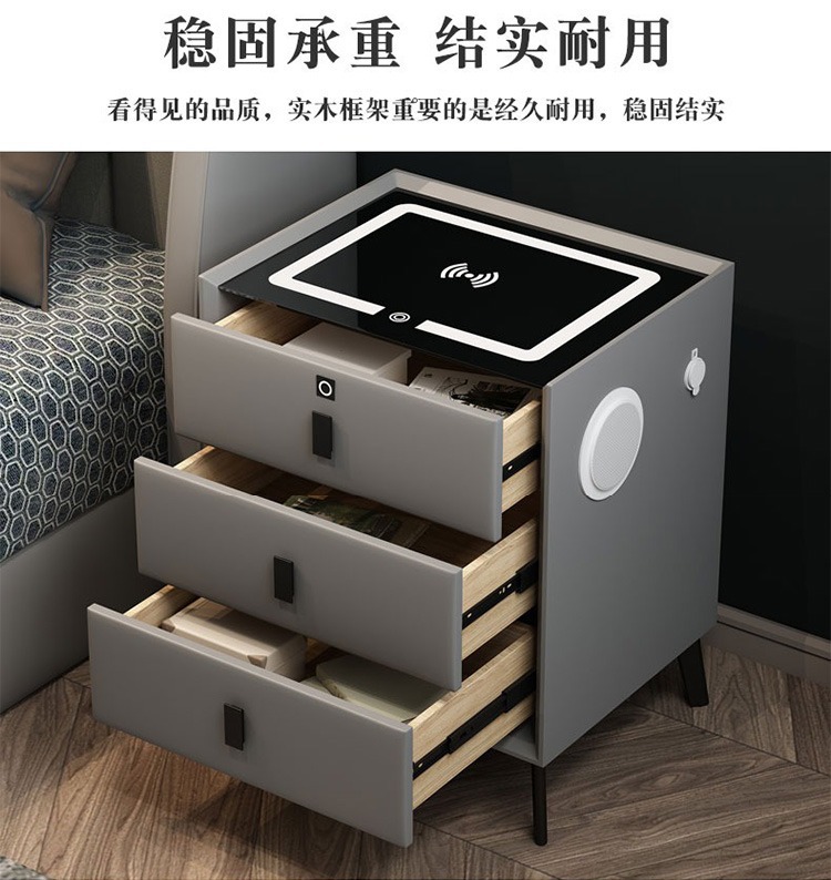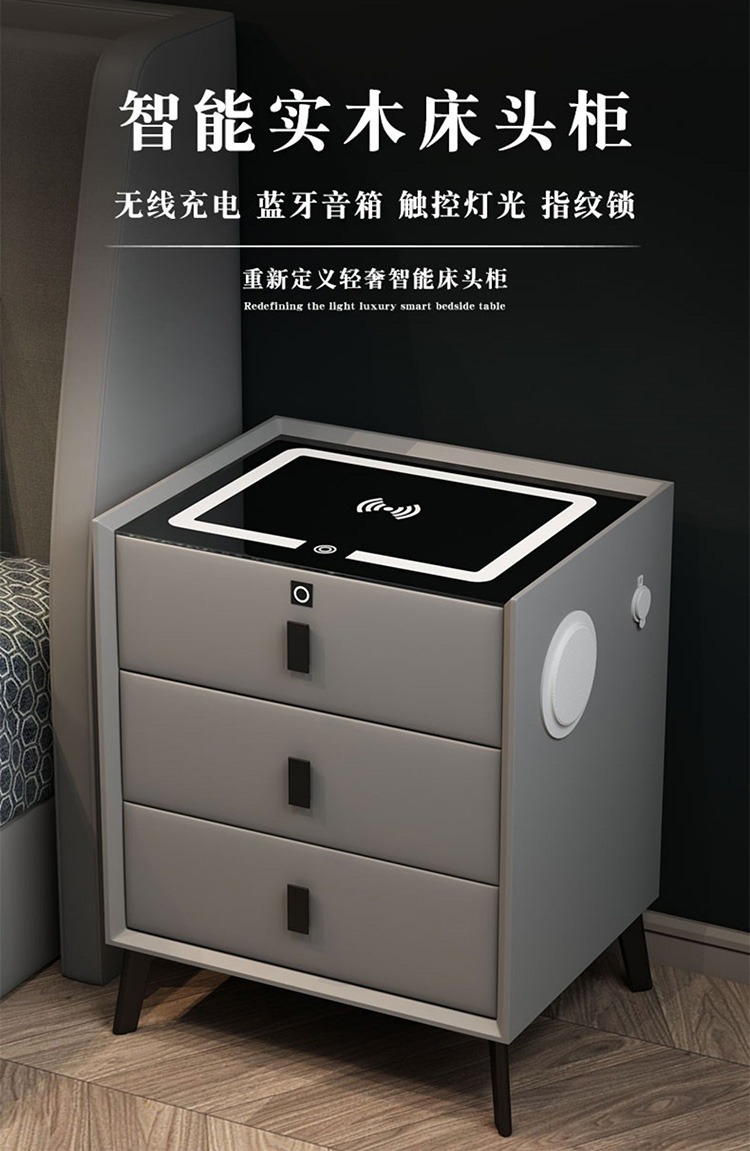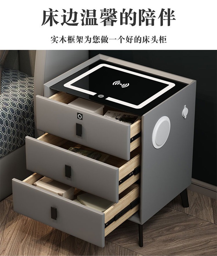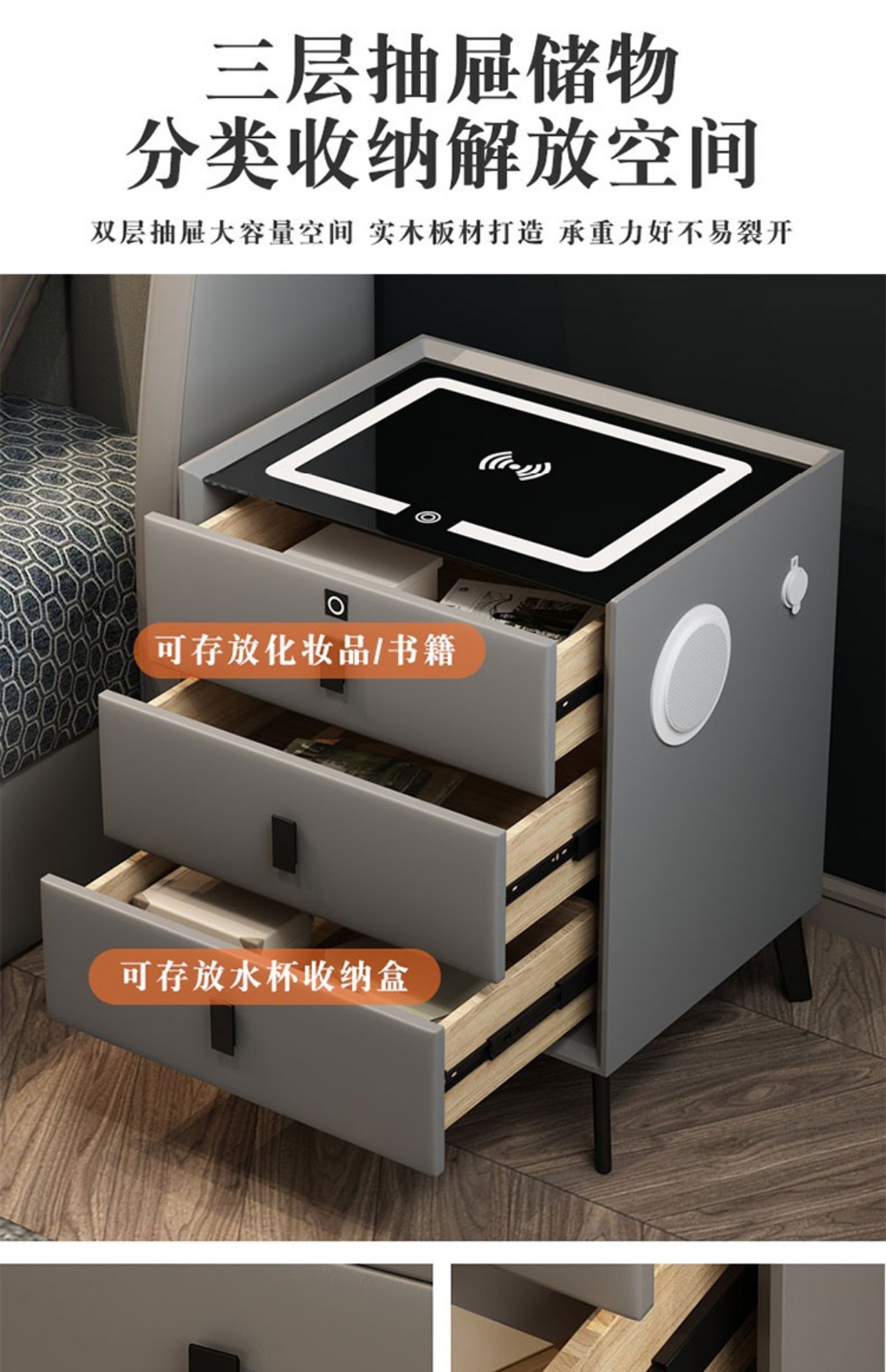 Прикроватный столик из массива дерева с тремя ящиками умный легкий люкс с беспроводной зарядкой