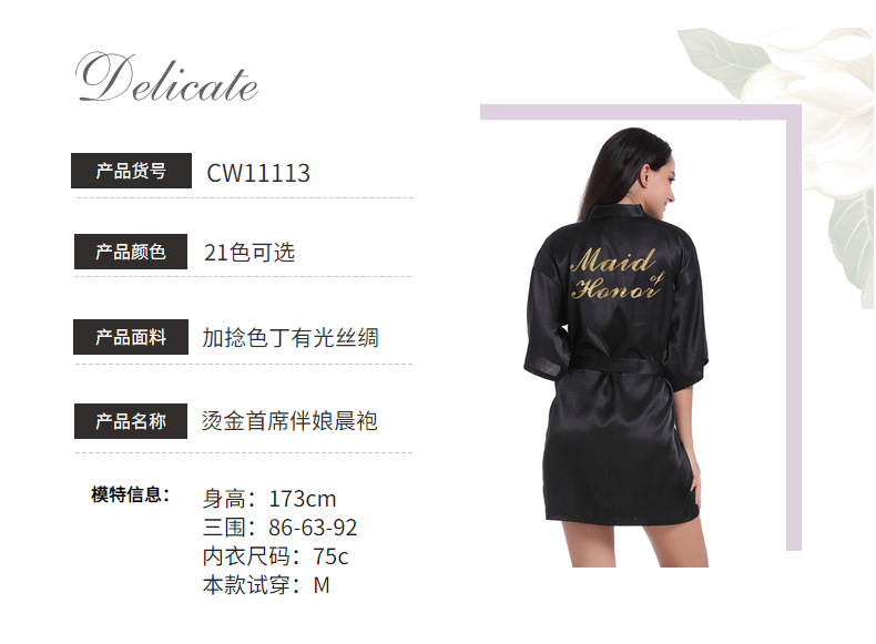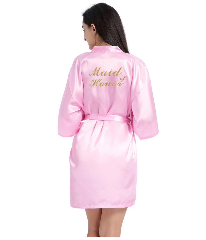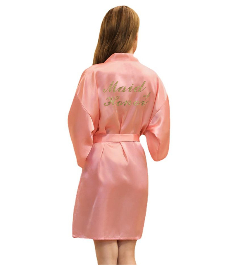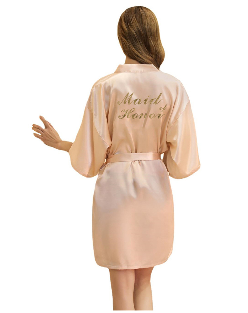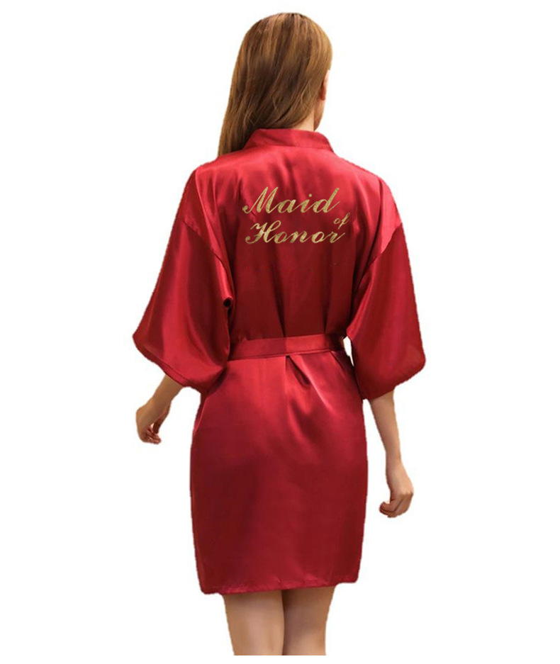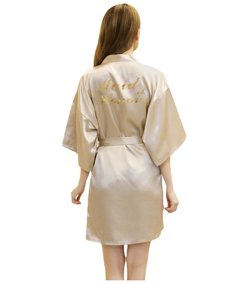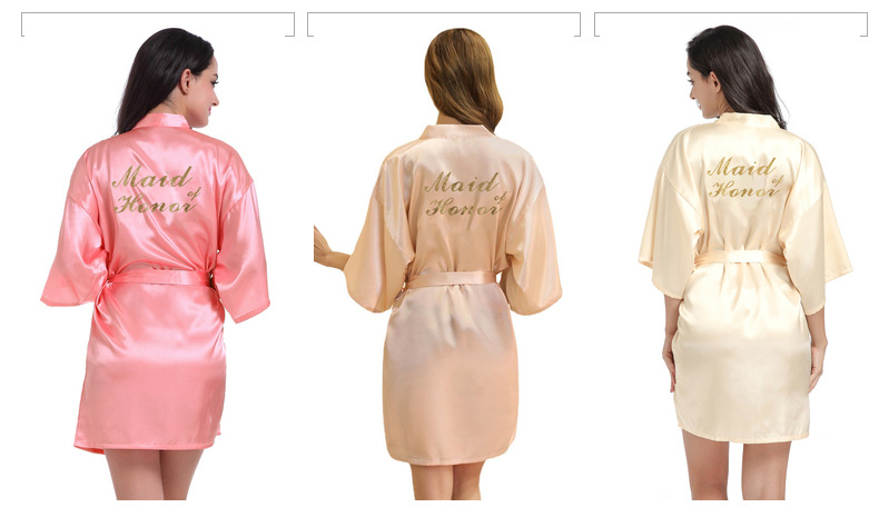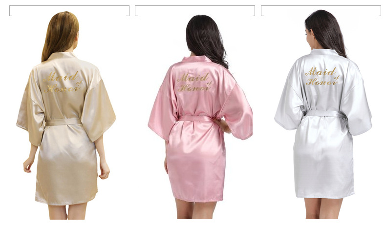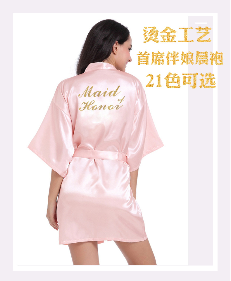 Кардиган халат для подружки невесты с золотым тиснением, летний тонкий халат главной подружки, имитация шелка