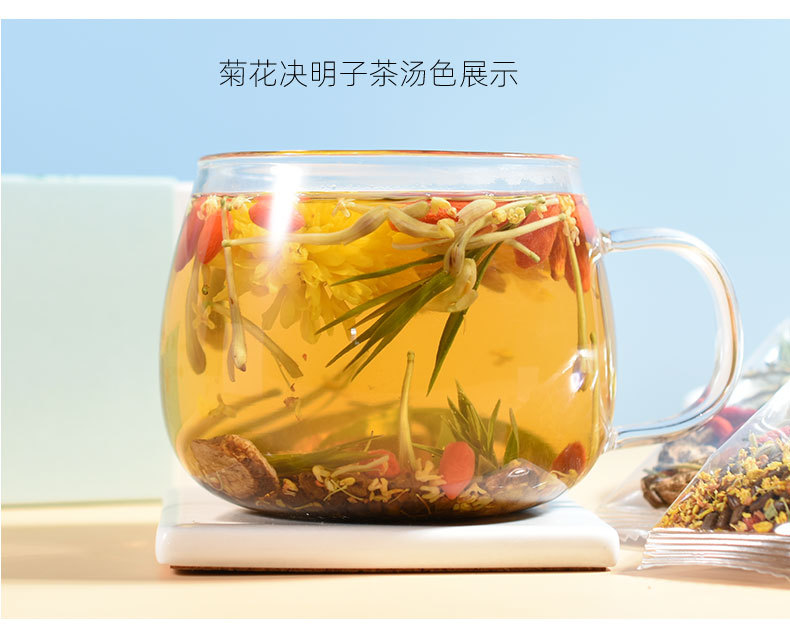 配料:山楂 枸杞 菊花 橘皮 决明子 栀子 金银花 大枣 冰糖