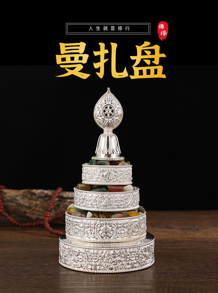 Пластина Манза из стерлингового серебра, восемь благоприятных символов, изысканная работа