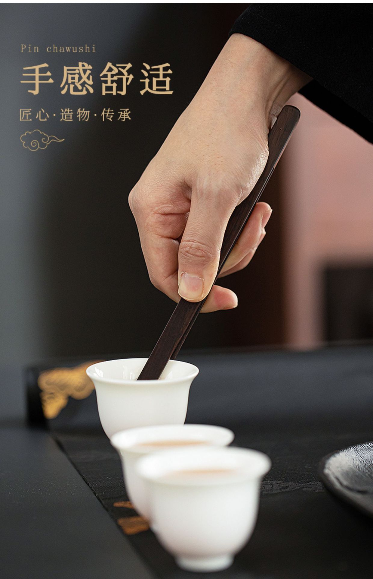 Эбеновый зажим для чая, аксессуары для набора кунг-фу, противоскользящий зажим для чашки, инструменты для чая, пинцеты для чашки