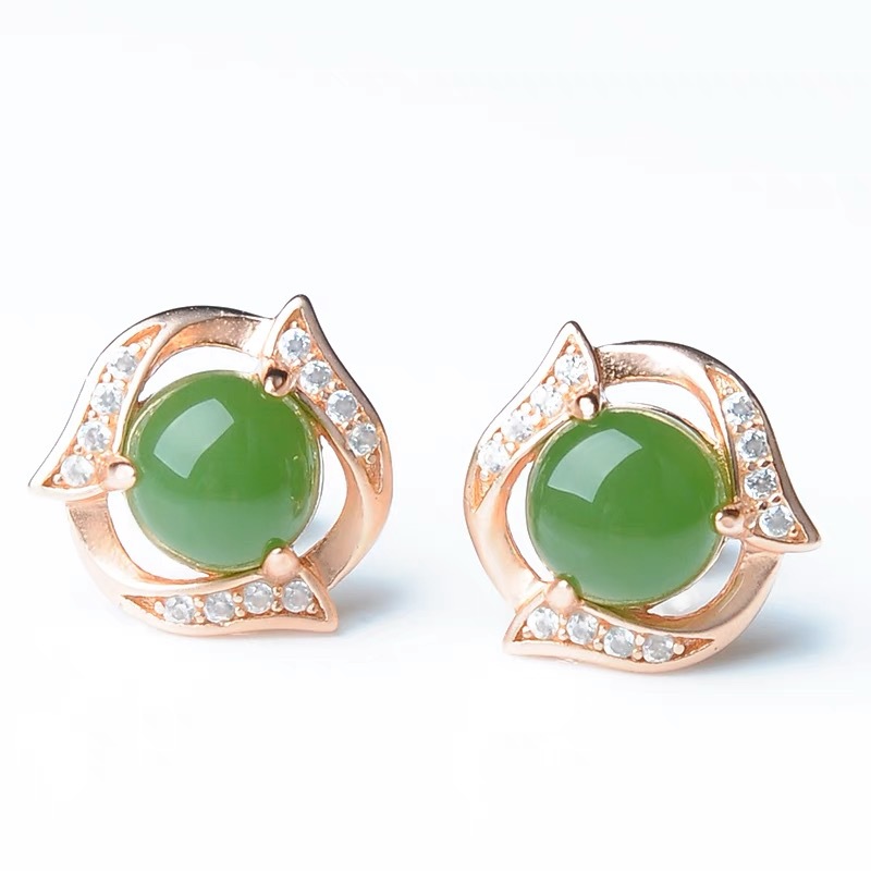 Натуральные серьги из малайского нефрита, зеленый халцедон, корейский стиль, модные, элегантные, простые серьги с яшмой, инкрустированные нефритом Хэтиан