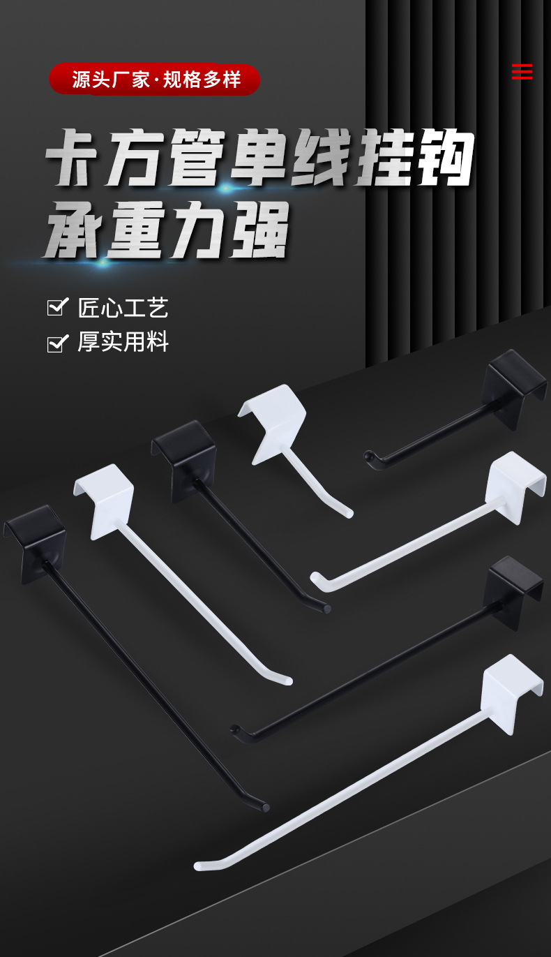 Квадратная трубка, одинарный крючок, черный крючок для одежды, полка для супермаркета, белый крючок для балки