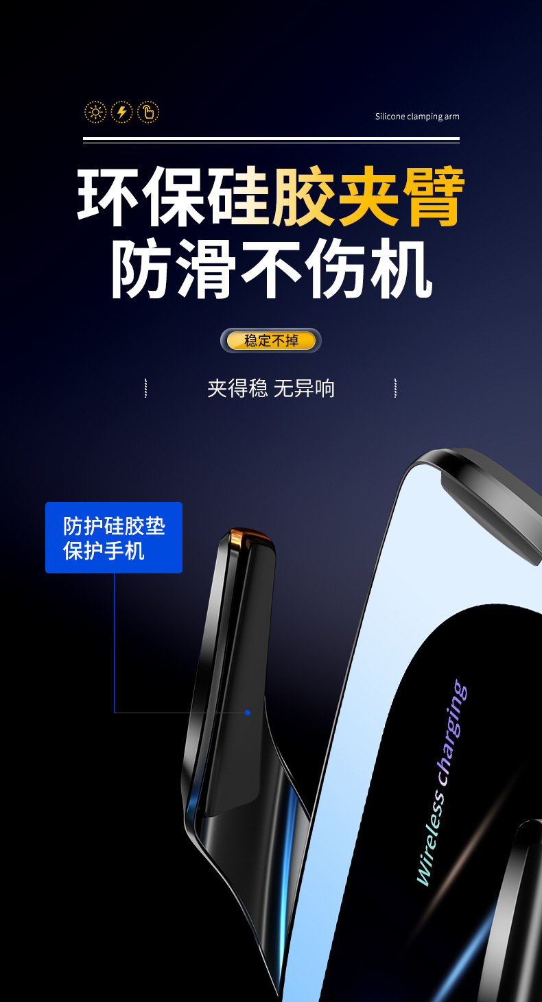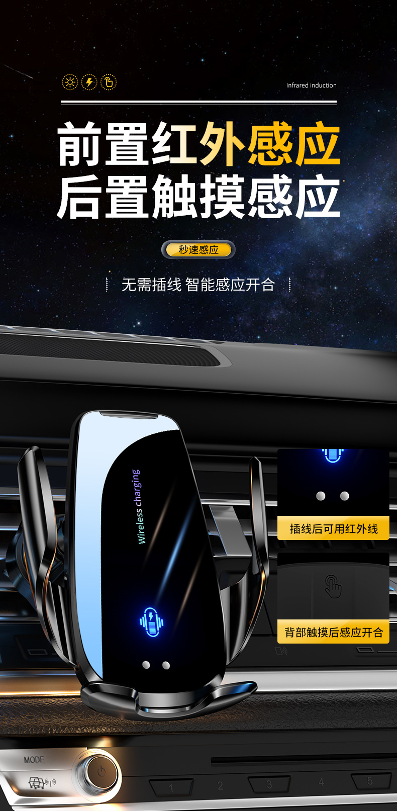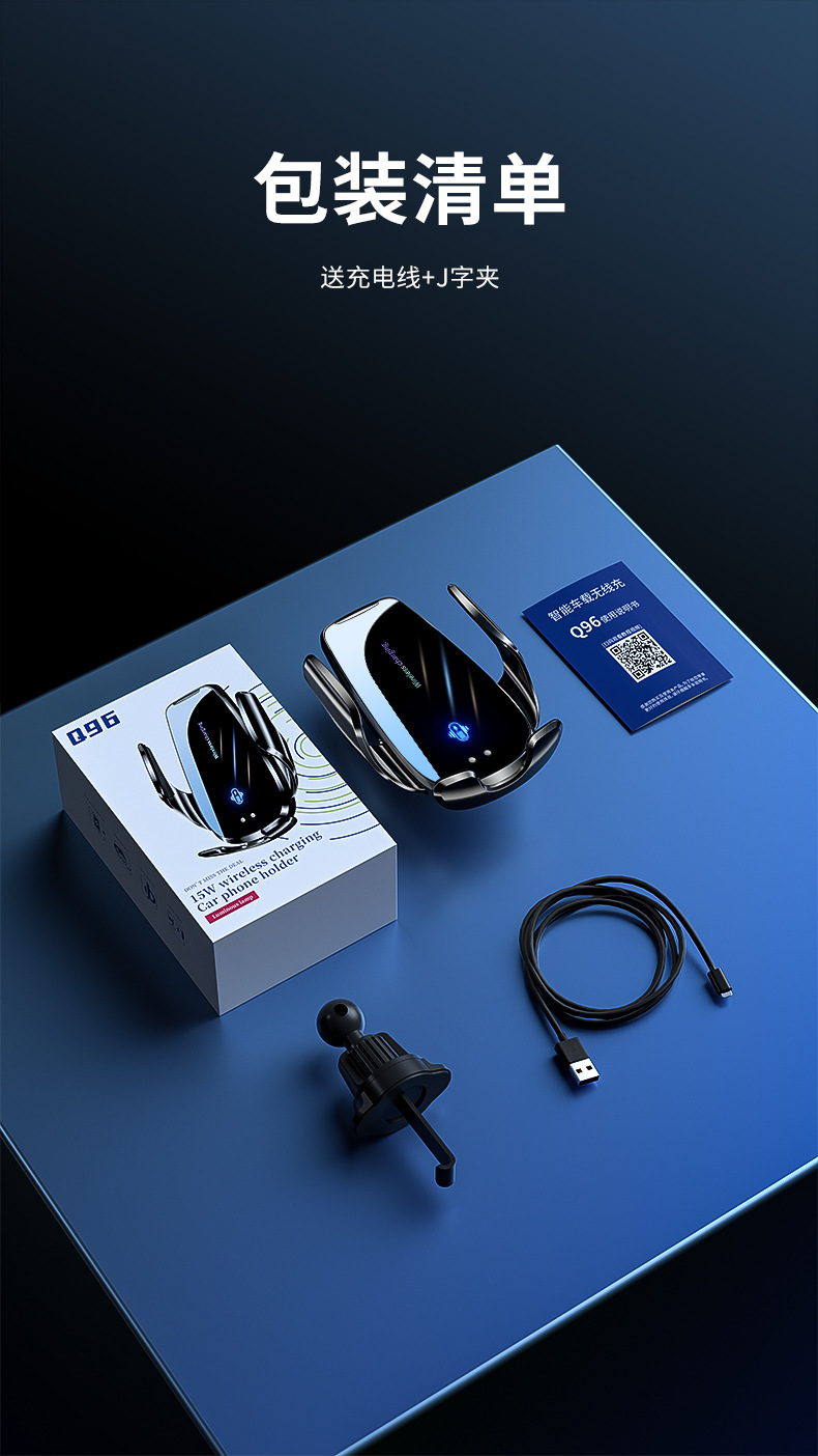Держатель для телефона Magic Clip Q96 с беспроводной зарядкой 15W, электрическое открытие и закрытие, навигационные аксессуары для автомобиля, быстрая беспроводная зарядка