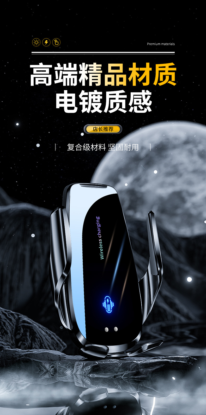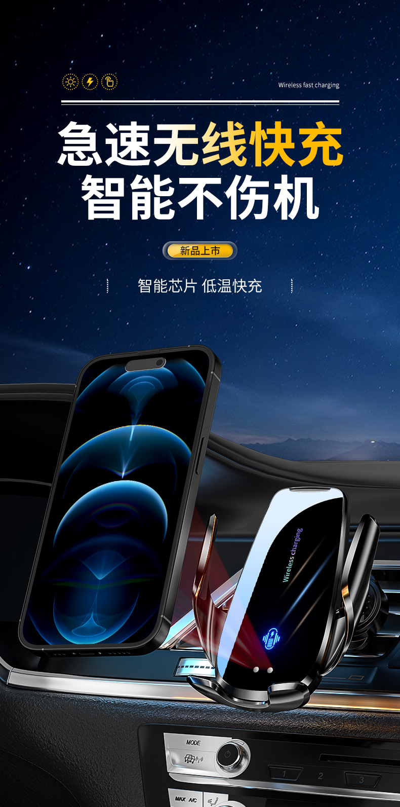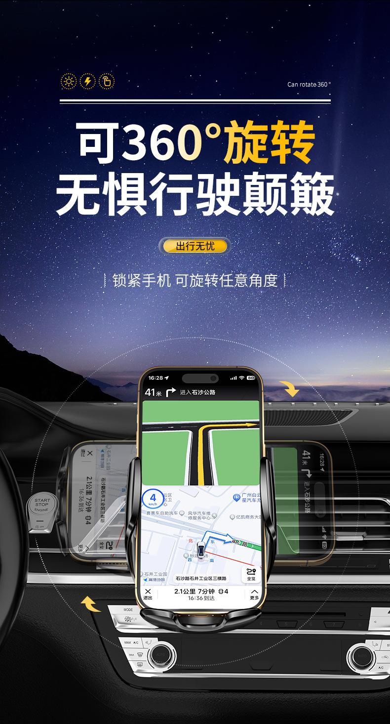 Держатель для телефона Magic Clip Q96 с беспроводной зарядкой 15W, электрическое открытие и закрытие, навигационные аксессуары для автомобиля, быстрая беспроводная зарядка