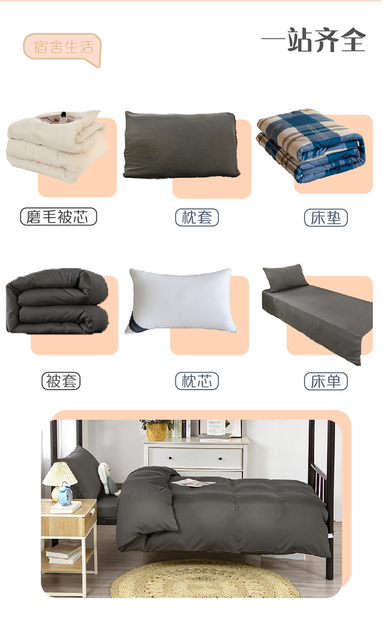 ![]() | solid color dark gray | Dormitory bed [group B] 2.00kg quilt (7-piece set in spring) | ¥89.5 / ≈ 1 089 ₽ | 5286 | 5230695923543 | |