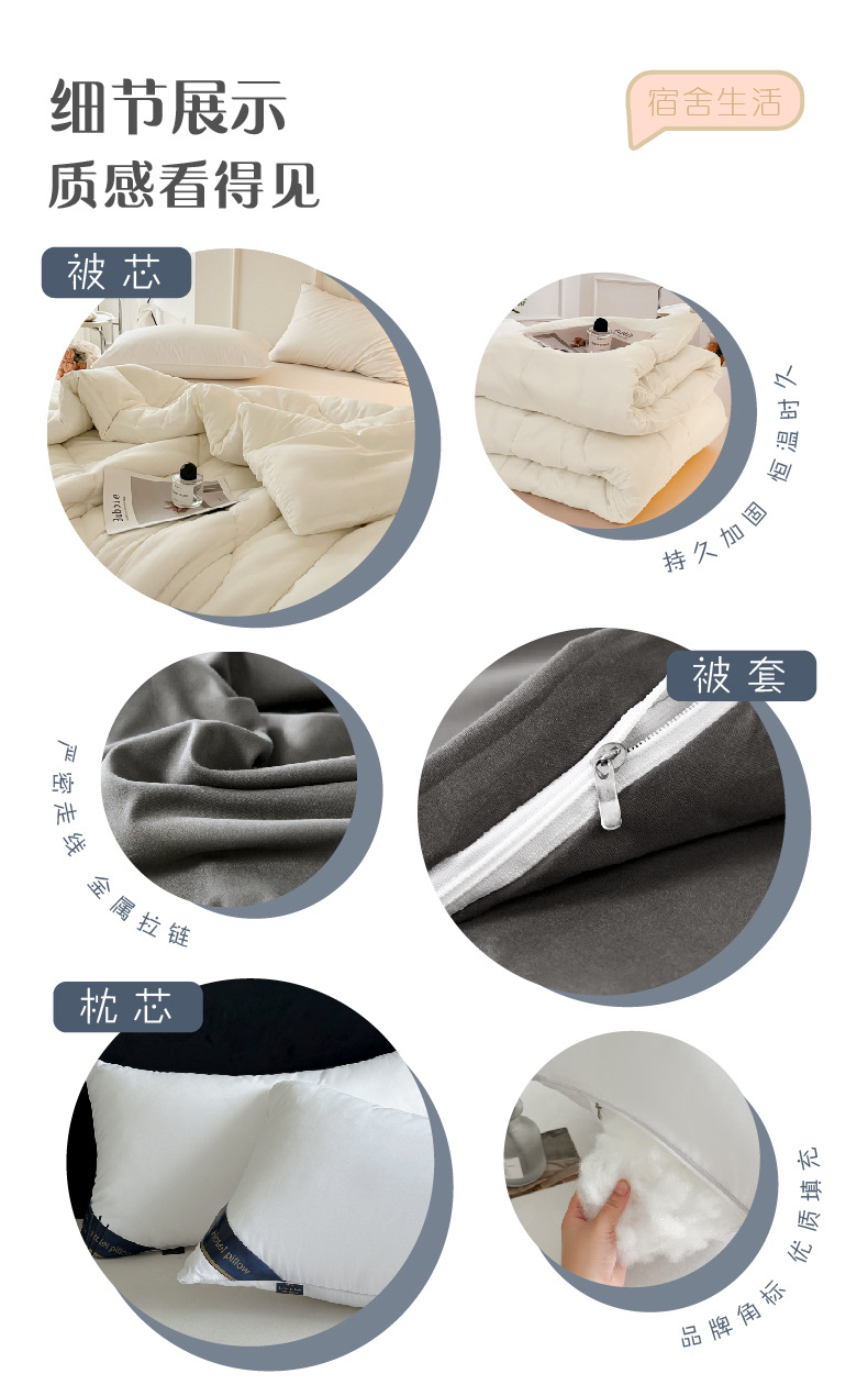 ![]() | solid color dark gray | Dormitory bed [group a] 3.00kg quilt (6-piece set in winter) | ¥88.5 / ≈ 1 076 ₽ | 5134 | 5230695923540 | |