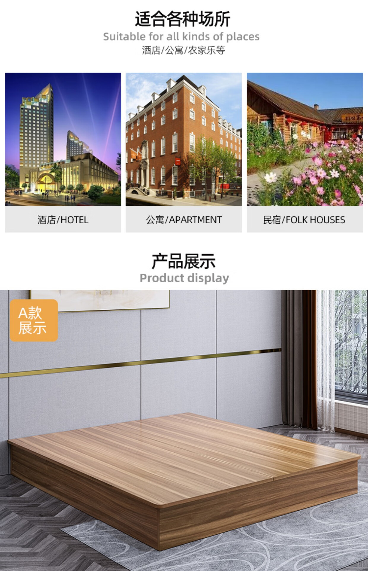 Специальная кровать для отелей Кровать-каркас Одноместная квартира Экспресс-отель Кровать для аренды Мебель для гостиницы Стандартный номер Полный комплект