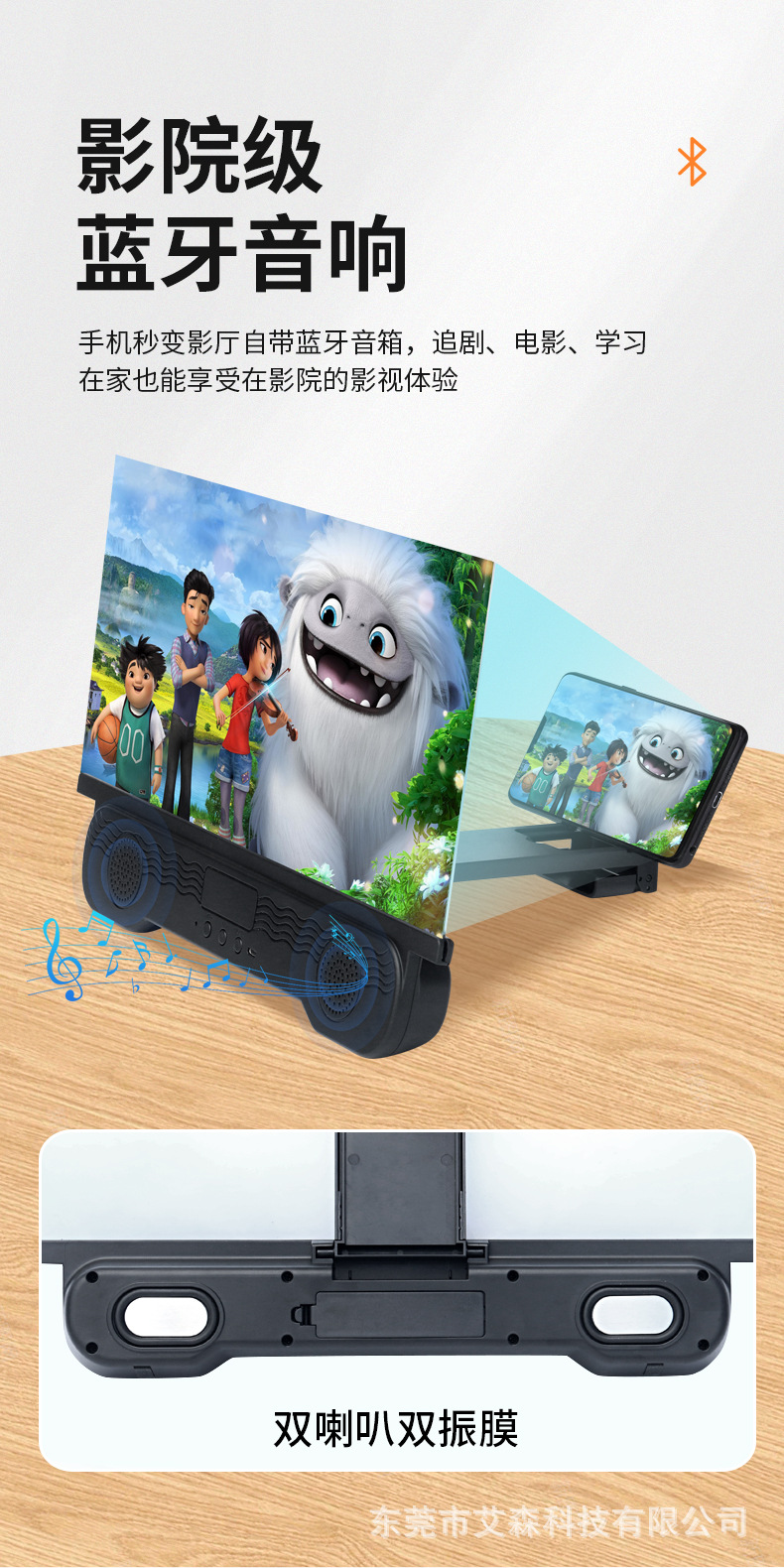 Функция Bluetooth audio, mobile phone screen enlargement, mobile phone bracket