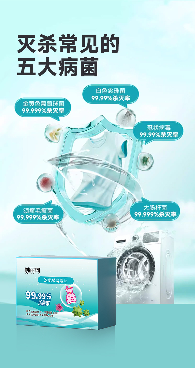 Таблетки для дезинфекции на основе гипохлорита, смешанная стирка одежды, стерилизация, удаление пылевых клещей, дезинфекция стиральной машины от HPV