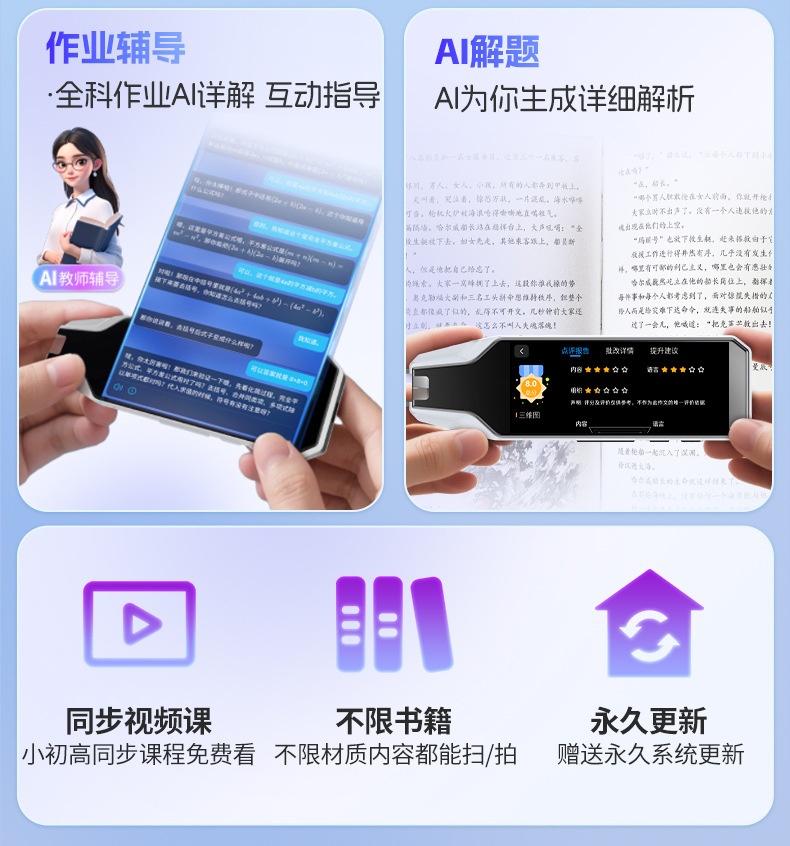 ![]() | Minimum order of 500 units | New version of md07 super ai version [ai approved homework + ai search questions + ai guidance]: offline scanning translation + synchronized video screen projection + scanning questions + shooting questions | ¥175.0 / ≈ 2 129 ₽ | 2000 | 5881014920605 | |