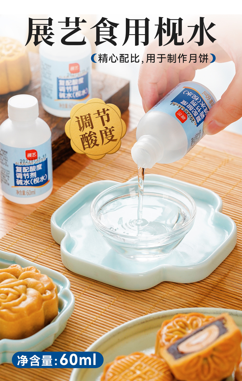 Выставочное искусство съедобная соевая вода щелочная вода кантонский лунный пирог составной регулятор кислотности домашний хлеб выпечка щелочной сырье 60мл