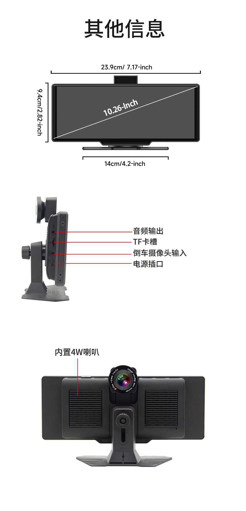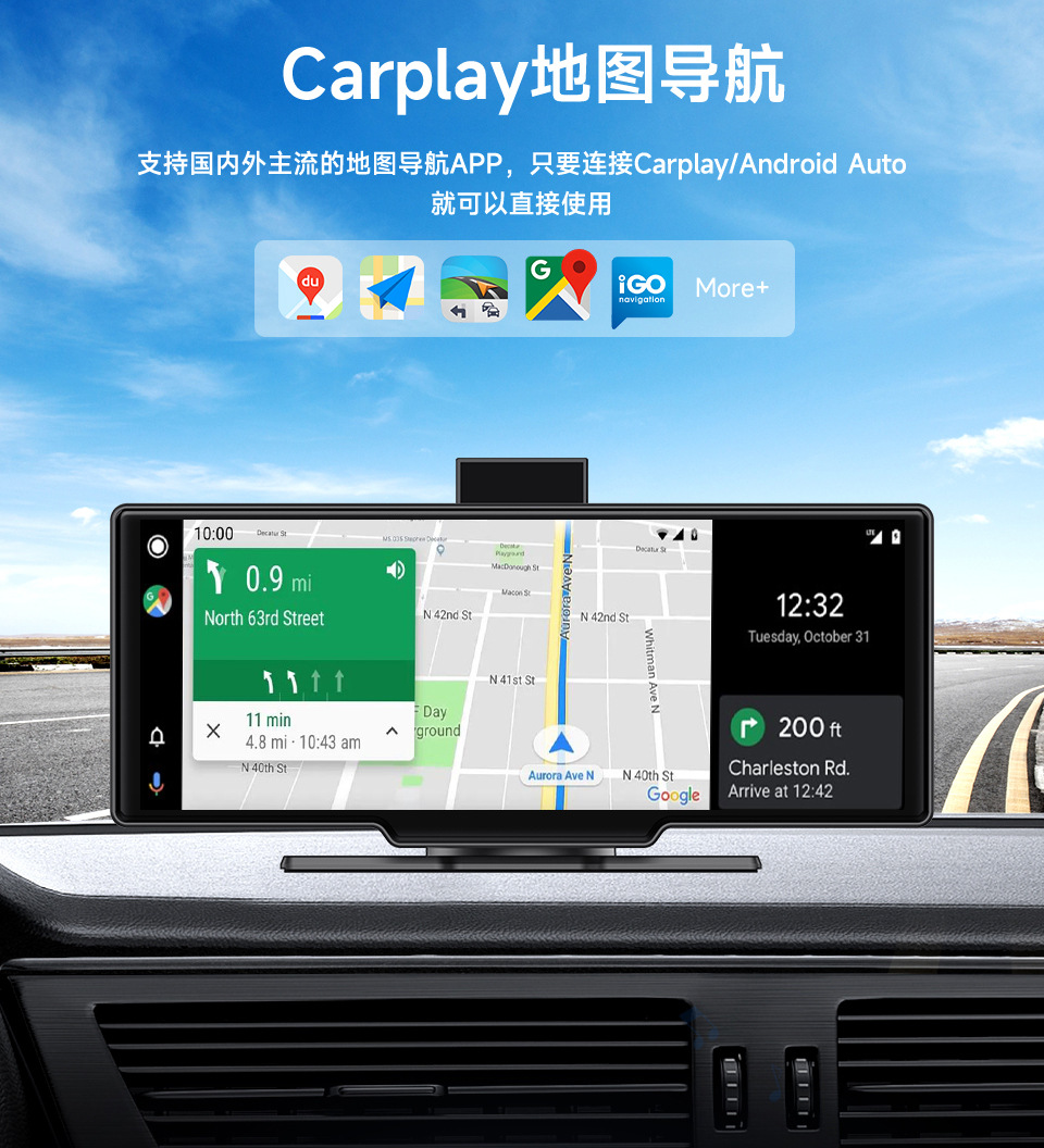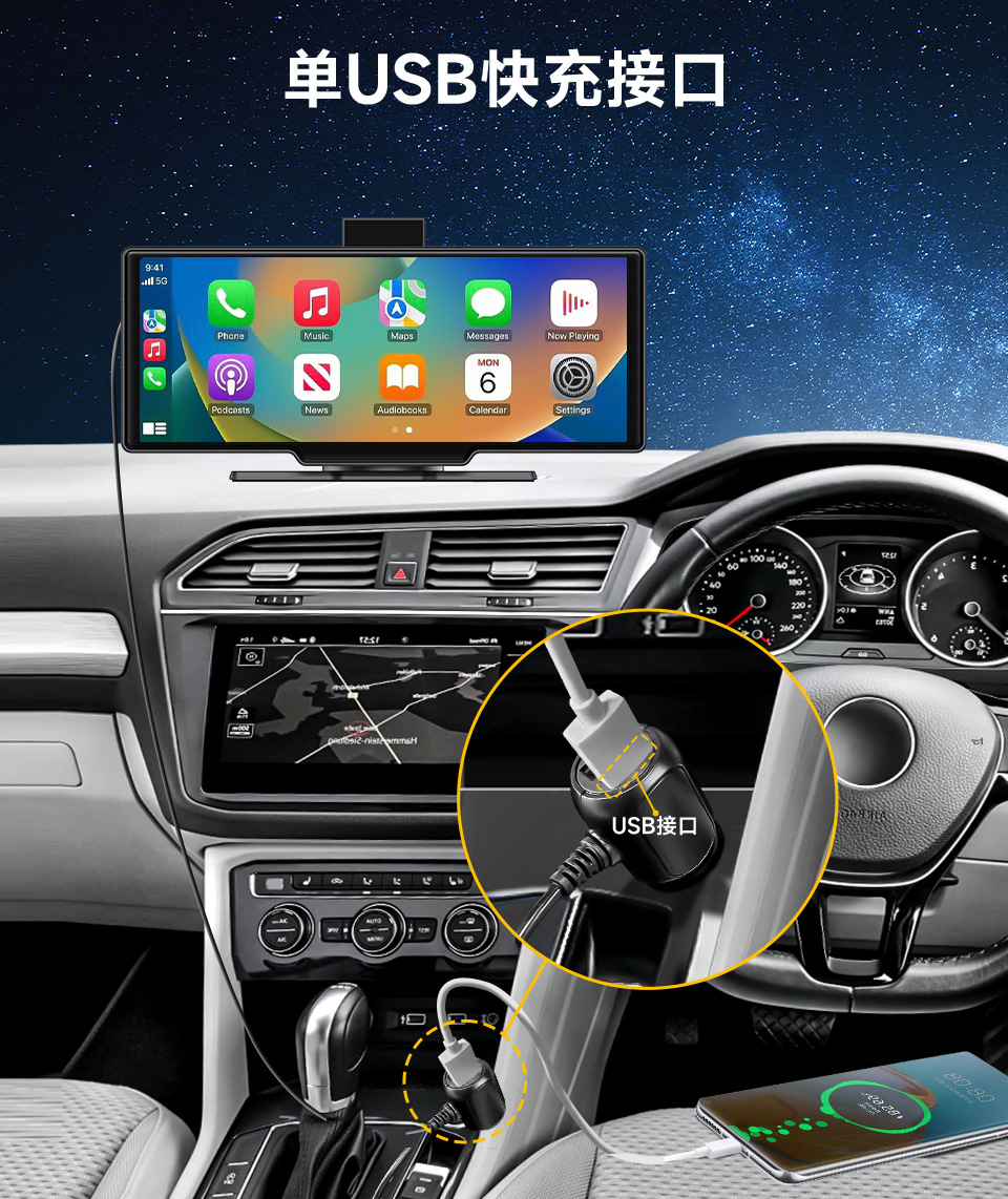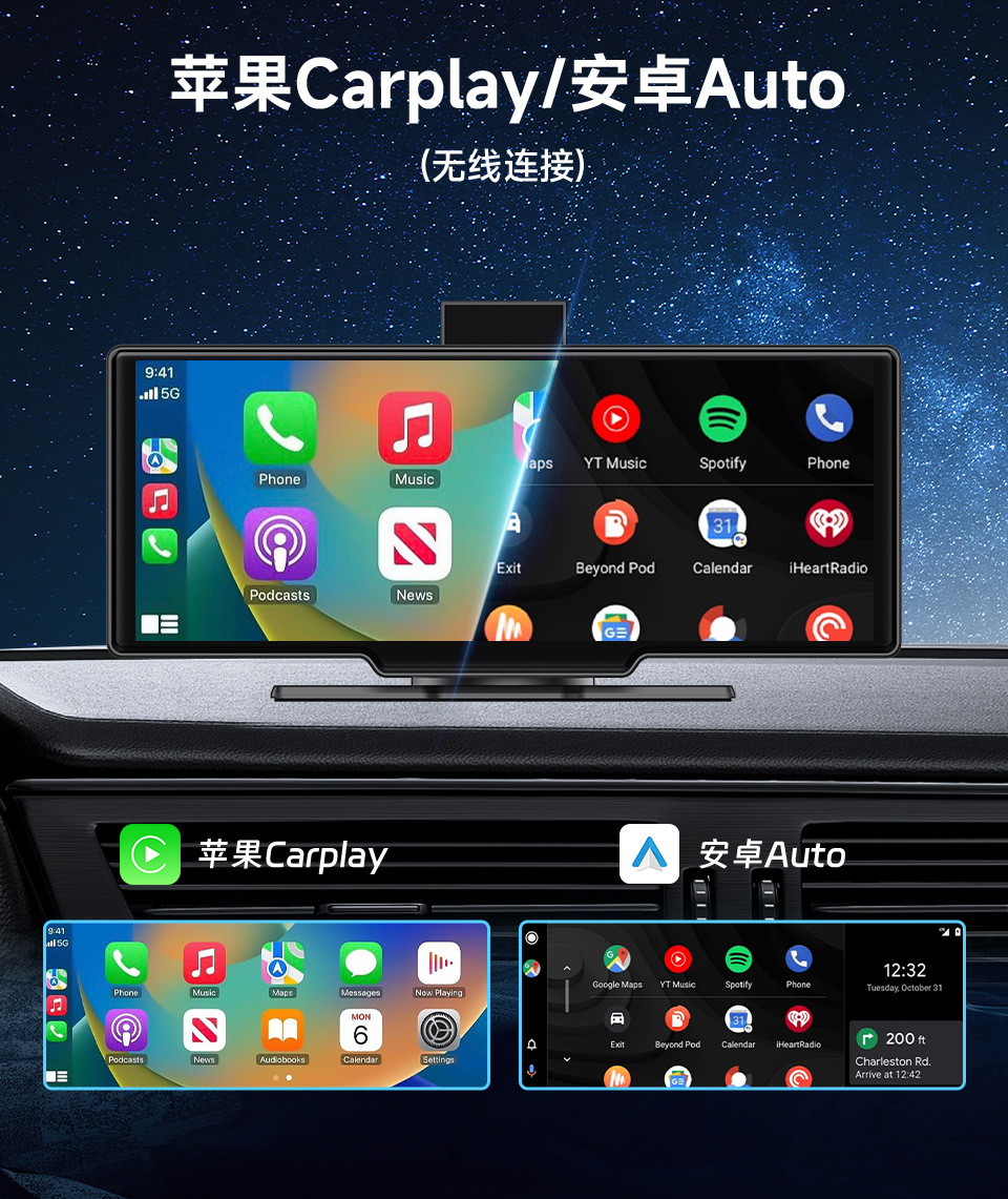 10.26-дюймовый портативный беспроводной Carplay с видеорегистратором, Bluetooth MP5 плеер