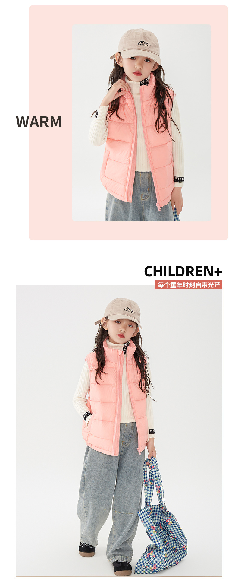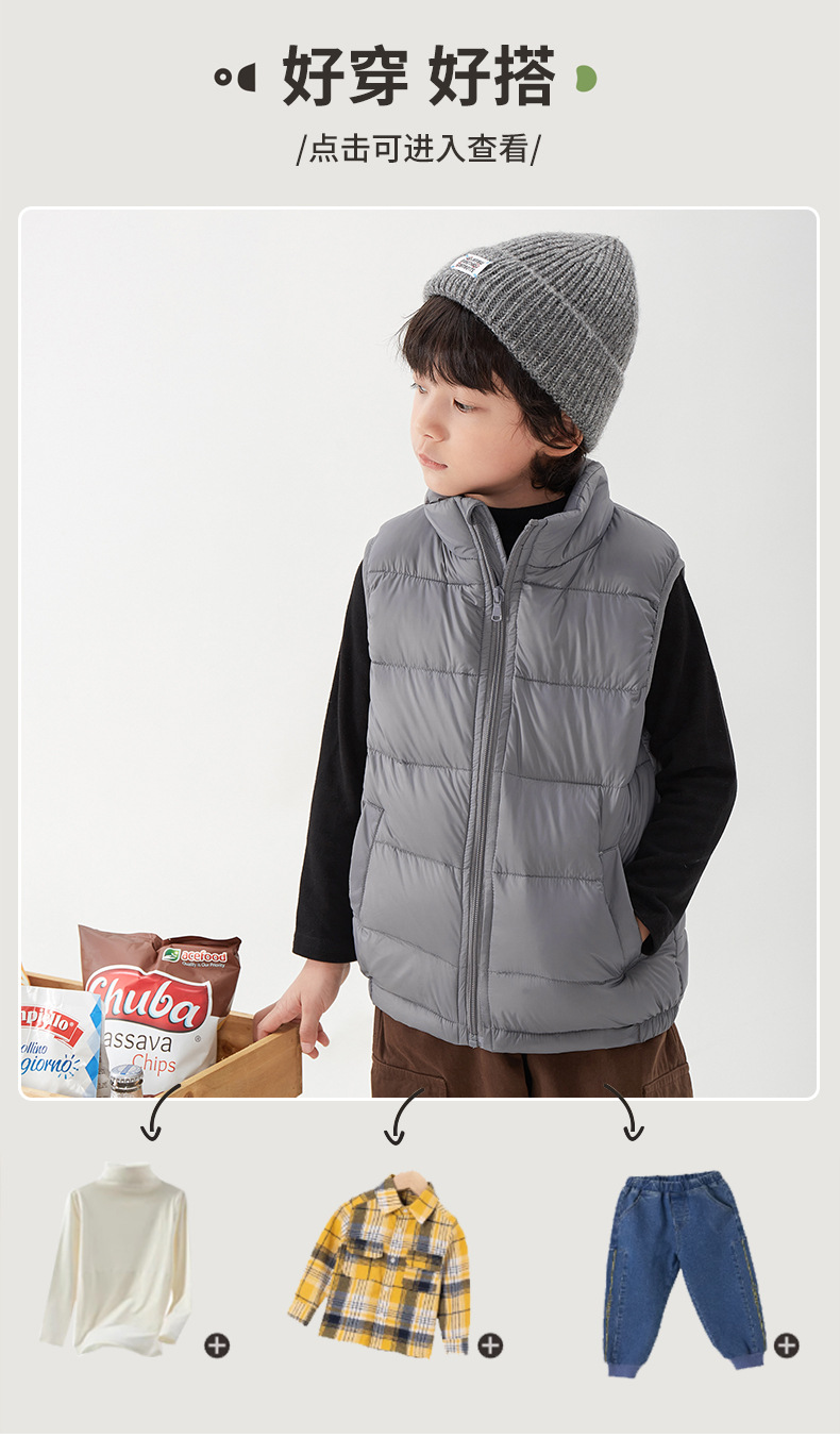 Пуховик без рукавов для детей из белого утиного пуха, верхняя одежда, новый стиль осень и зима 2024 года, теплый утолщенный жилет