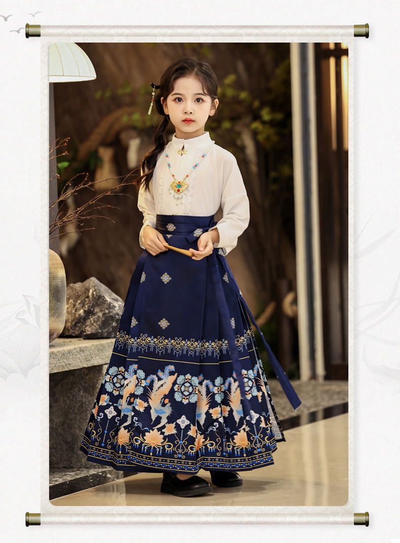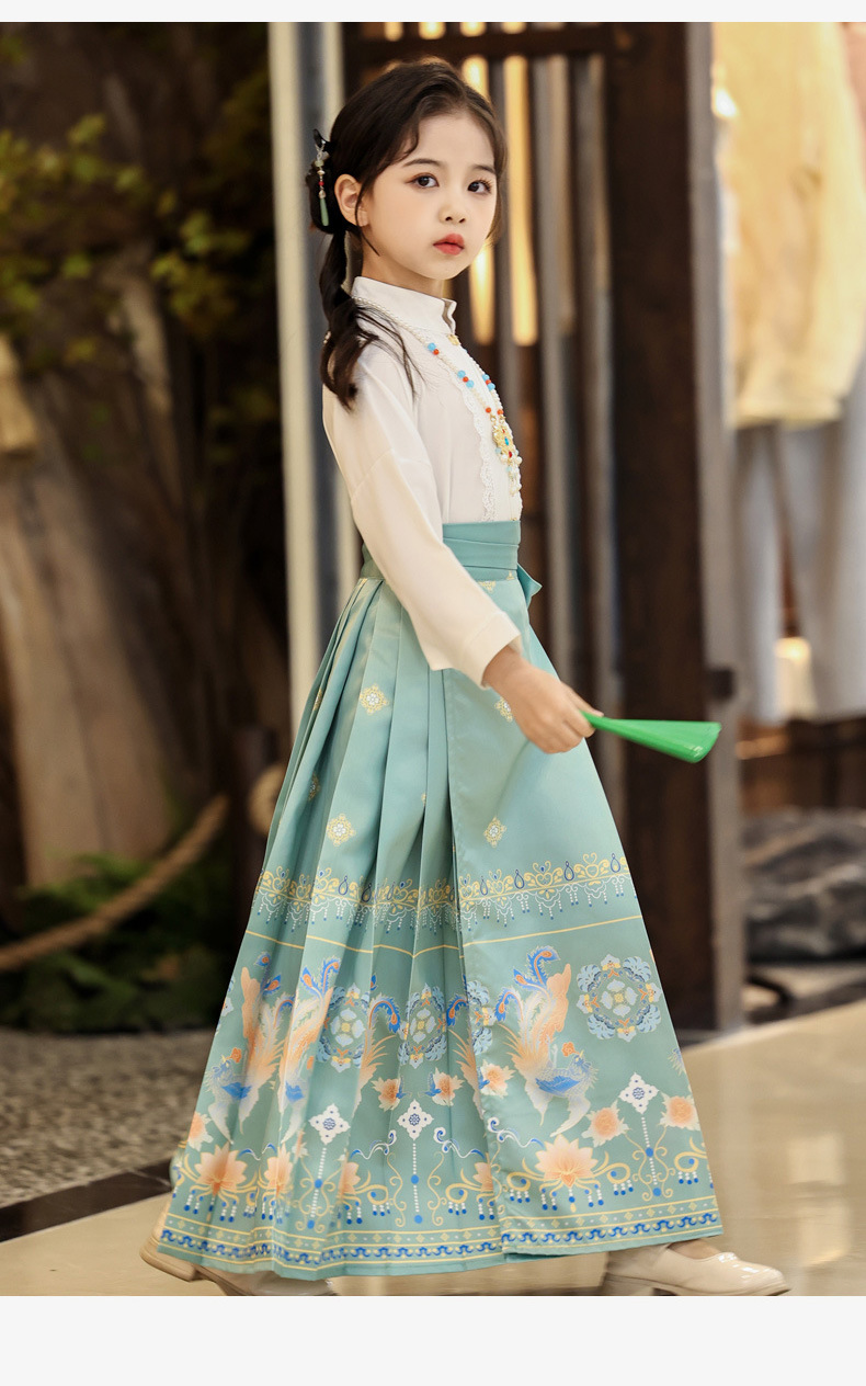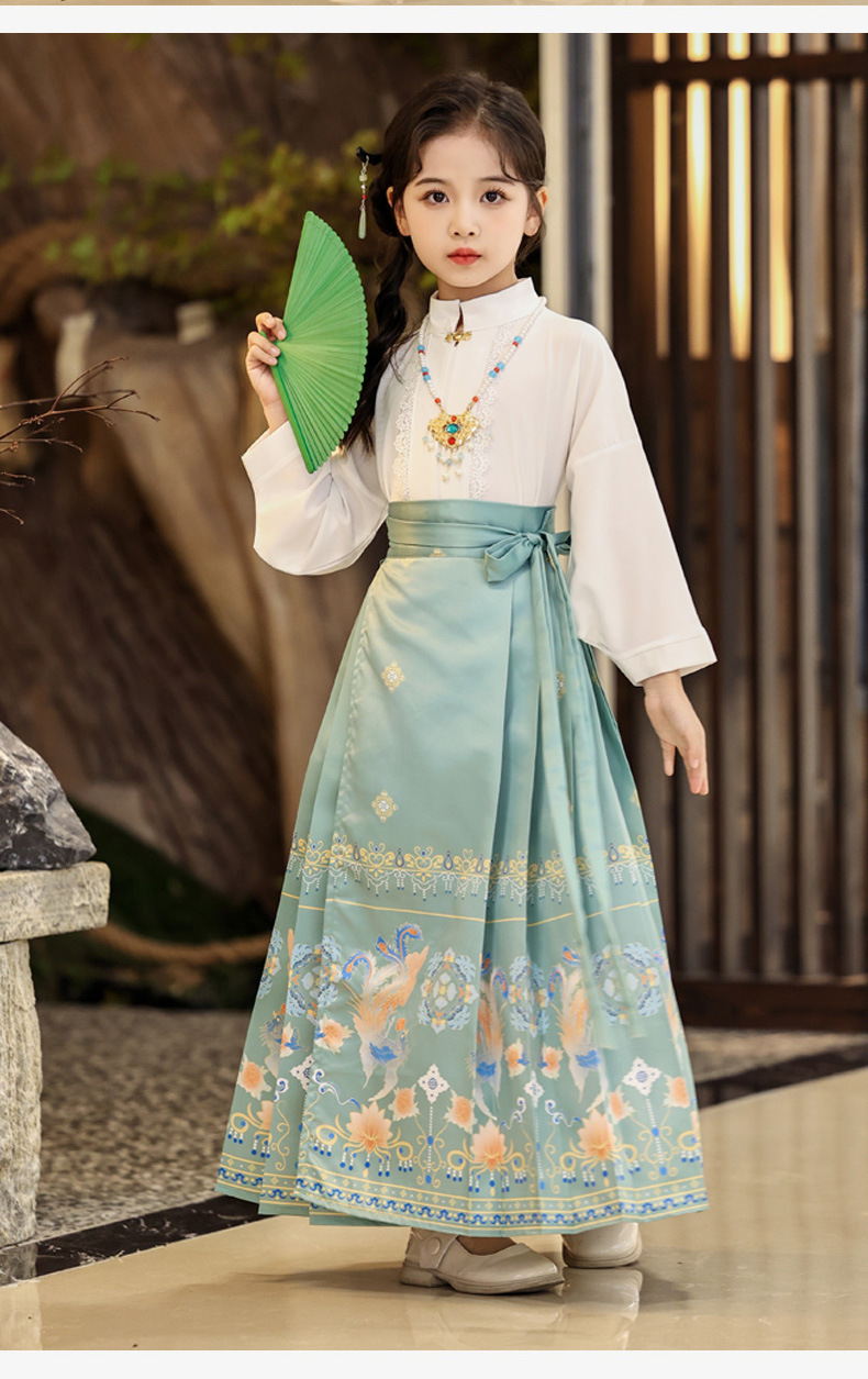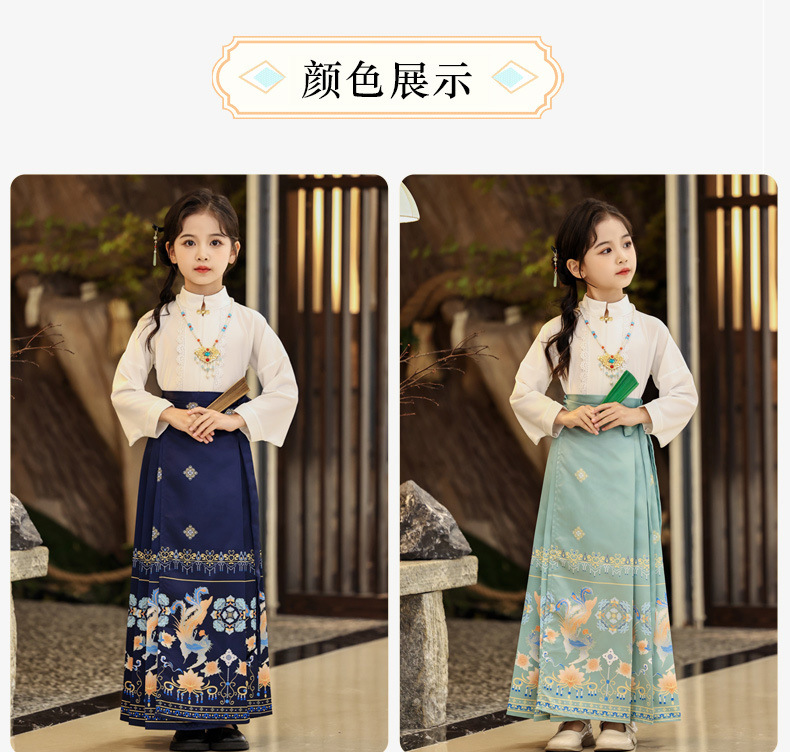 Китайский стиль древний костюм для девочек юбка с лошадиной мордой комплект тонкий Ханфу юбка летняя одежда для детей